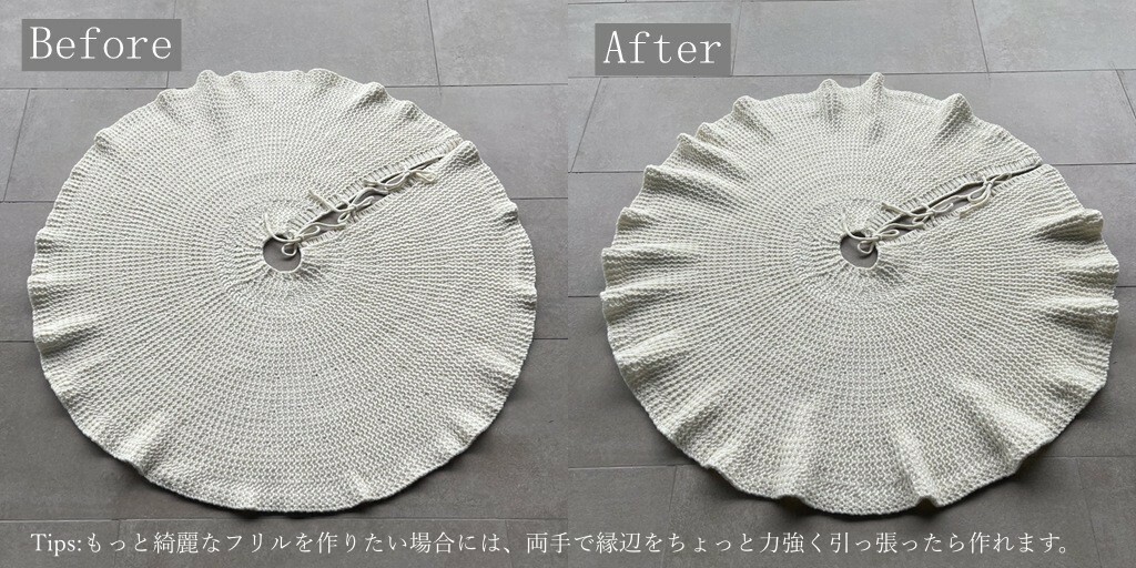 【固定しやすい紐】3つの紐がクリスマスツリーの下をより固定するツリースカートを固定します。