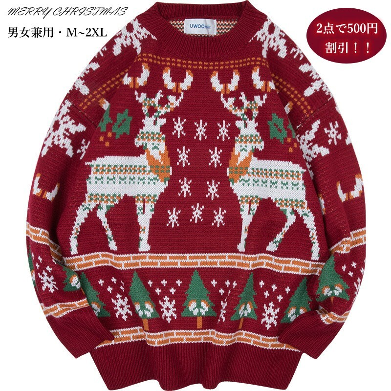 クリスマスセーター レディース メンズ メンズファッション 豊富 M L XL 2XL レッド グリーン ネイビー