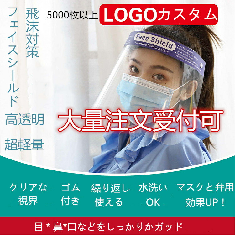 1500円クーポン フェイスシールド 50枚入り フェイスガードプラスチック製 顔面保護マスク マスク 防塵 曇り止め face shield 透明シールド 通気性 安全 簡単装 保護シールド