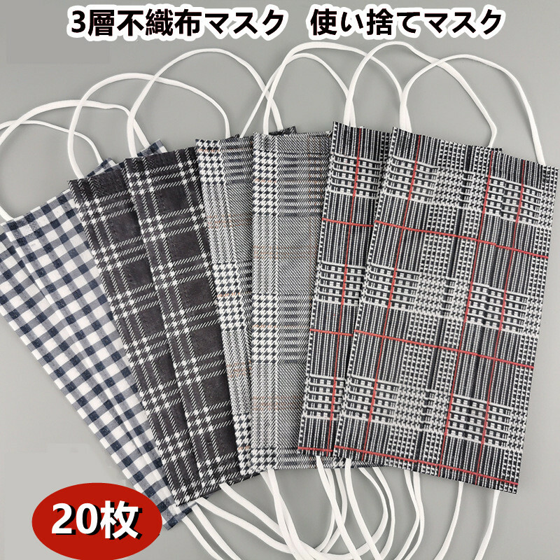 マスク 20枚セット 成人用 使い捨て 防災関連グッズ マスク 防塵マスク 続々入荷中 ホワイト地チェック 黒地チェック グレー地細いチェック 細いレッドチェック レインボー ブラック地細いチェック ブラウン地チェック 薄いピンク地チェック ライトグリーン地チェック ブルー地チェック ピンク地チェック ブルーホワイトチェック ピンクホワイトチェック ネイビー地細いストラップ ネイビー地チェック