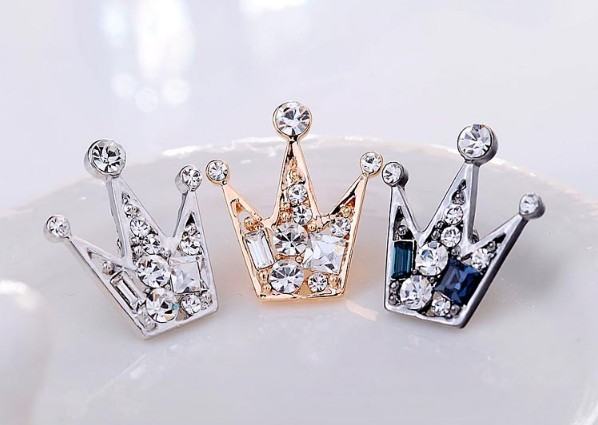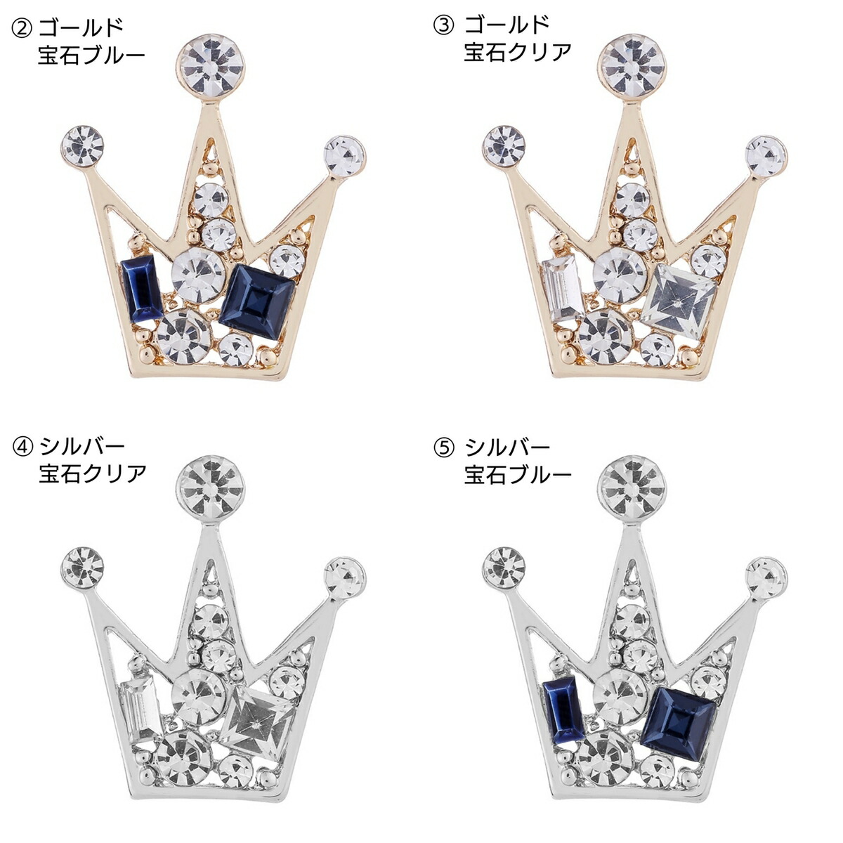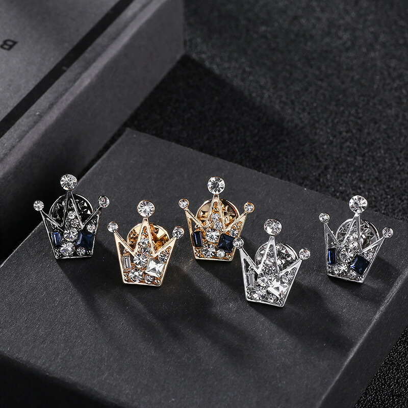 男女兼用 王冠 ブローチジュエリー メ メンズジュエリー アクセサリー ラペルピン 通販 ガンメタ宝石ブルー ゴールド宝石ブルー ゴールド宝石クリア シルバー宝石クリア シルバー宝石ブルー