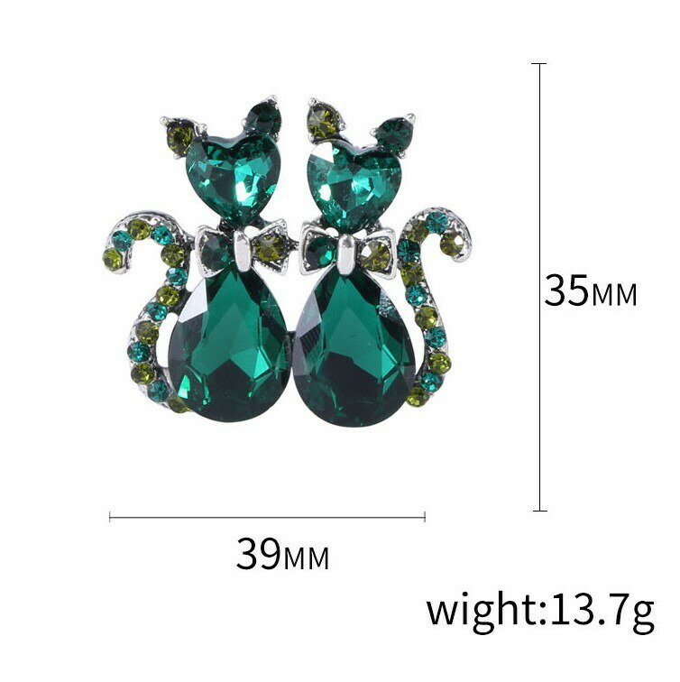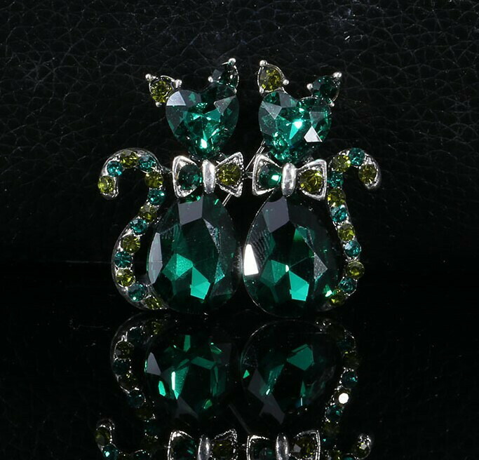 スワロフスキー エメラルド キャット ブローチ 猫 アクセサリー レディースジュエリー ジュエリー