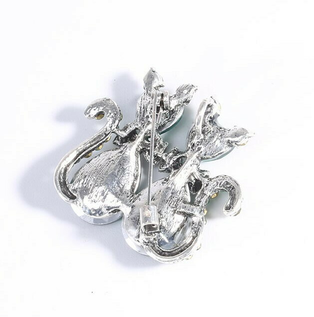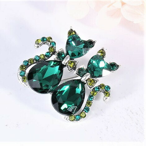 スワロフスキーエメラルドの輝きが美しい猫ブローチ♪