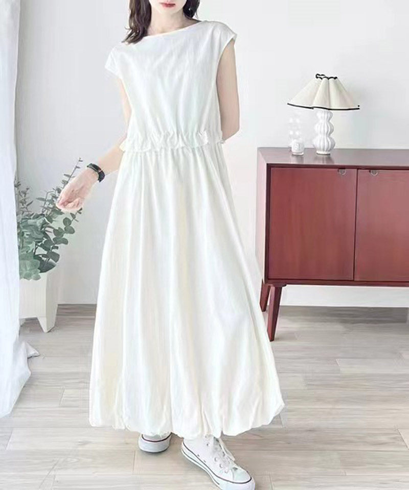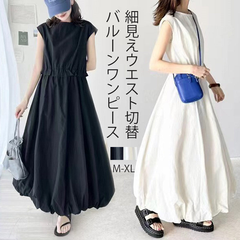 ロングワンピース バルーン レディース レディースファッション 続々登場 ホワイト ブラック M L XL