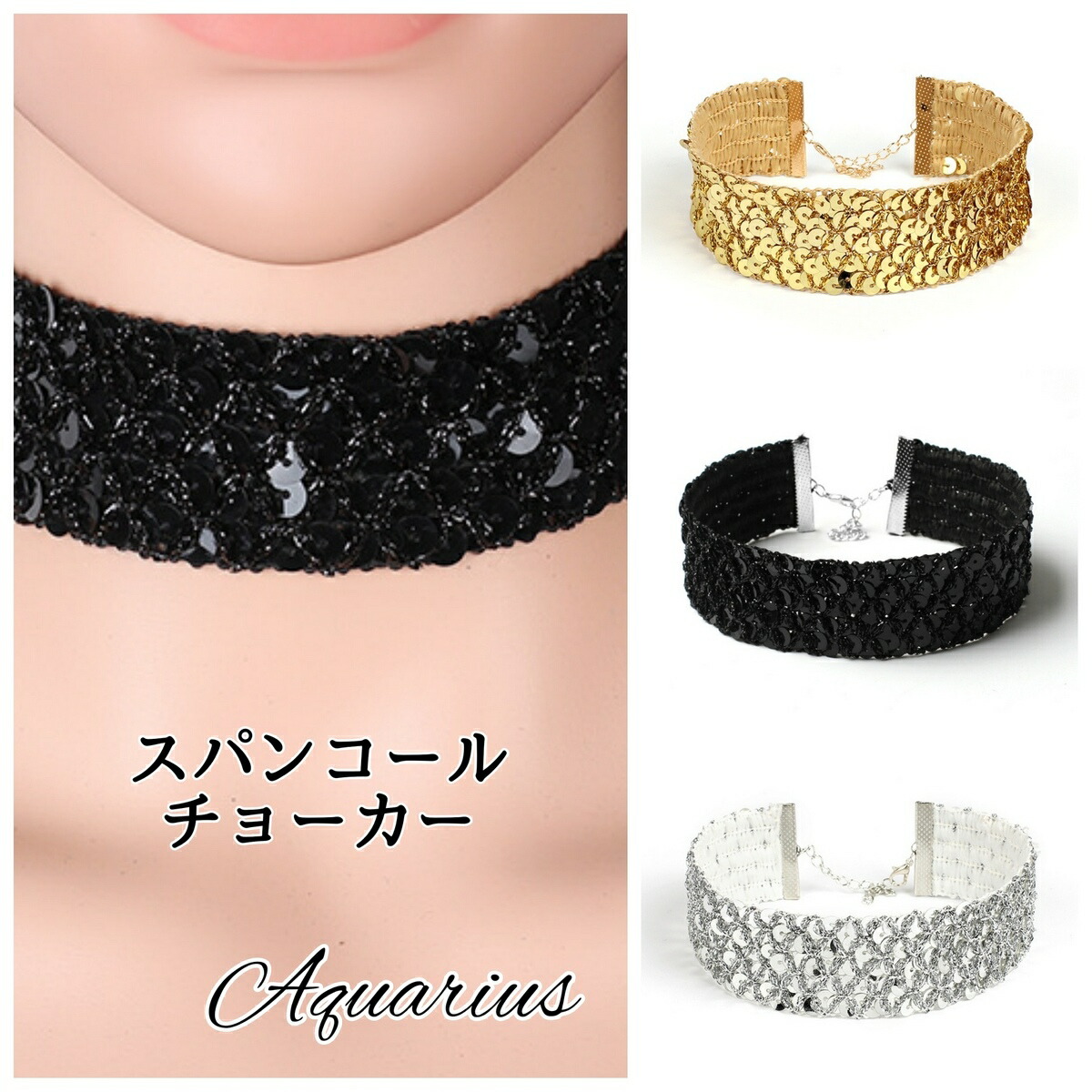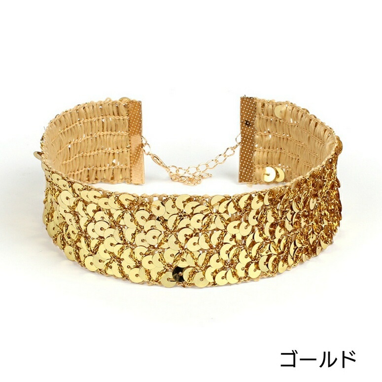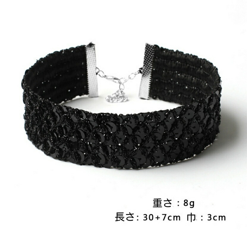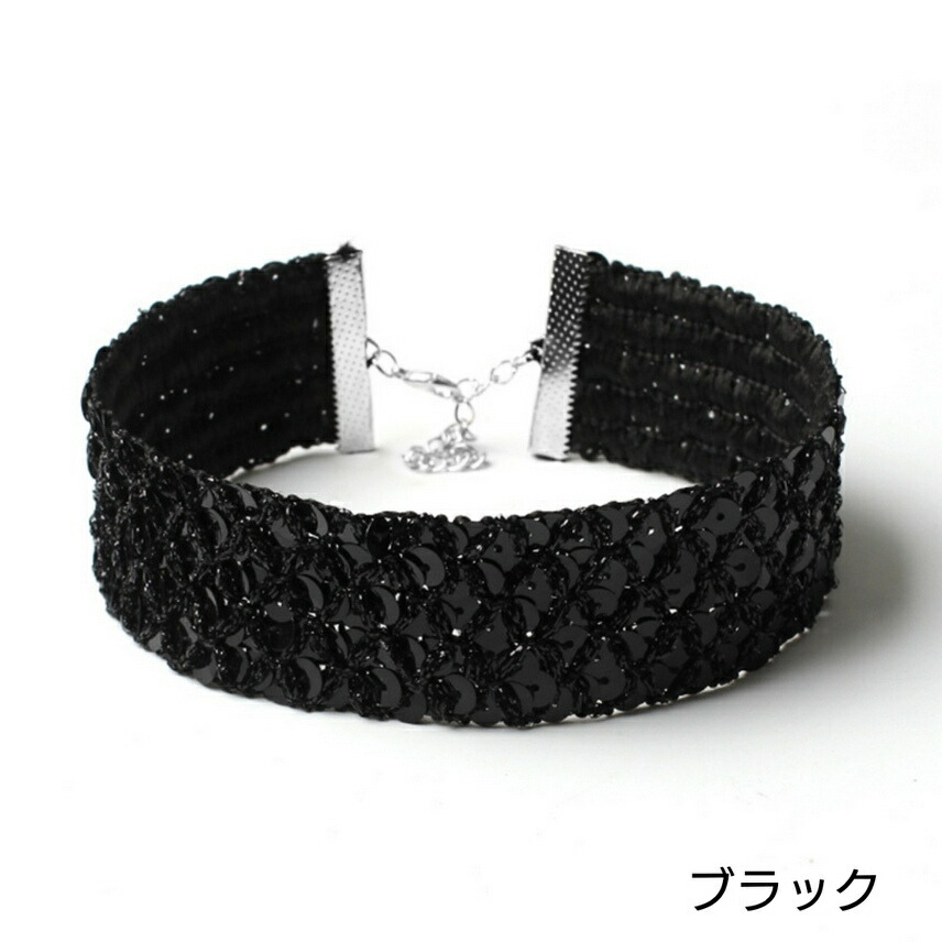 カラバリ スパンコール チョーカー 5 レディースジュエリー アクセサリー チョーカー 新作 ゴールド ブラック シルバー レッド ホワイト