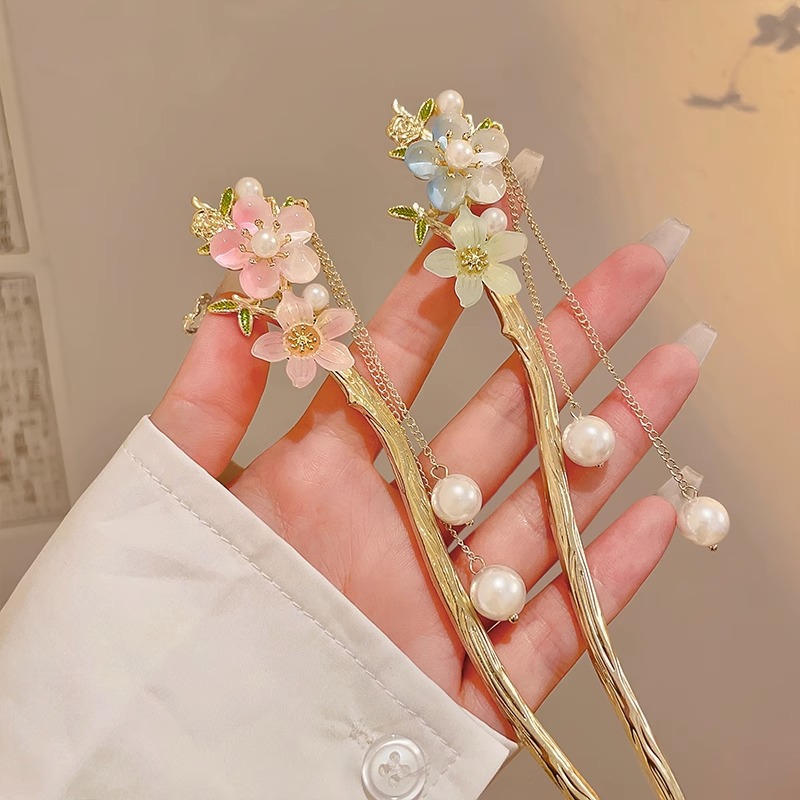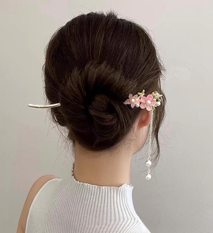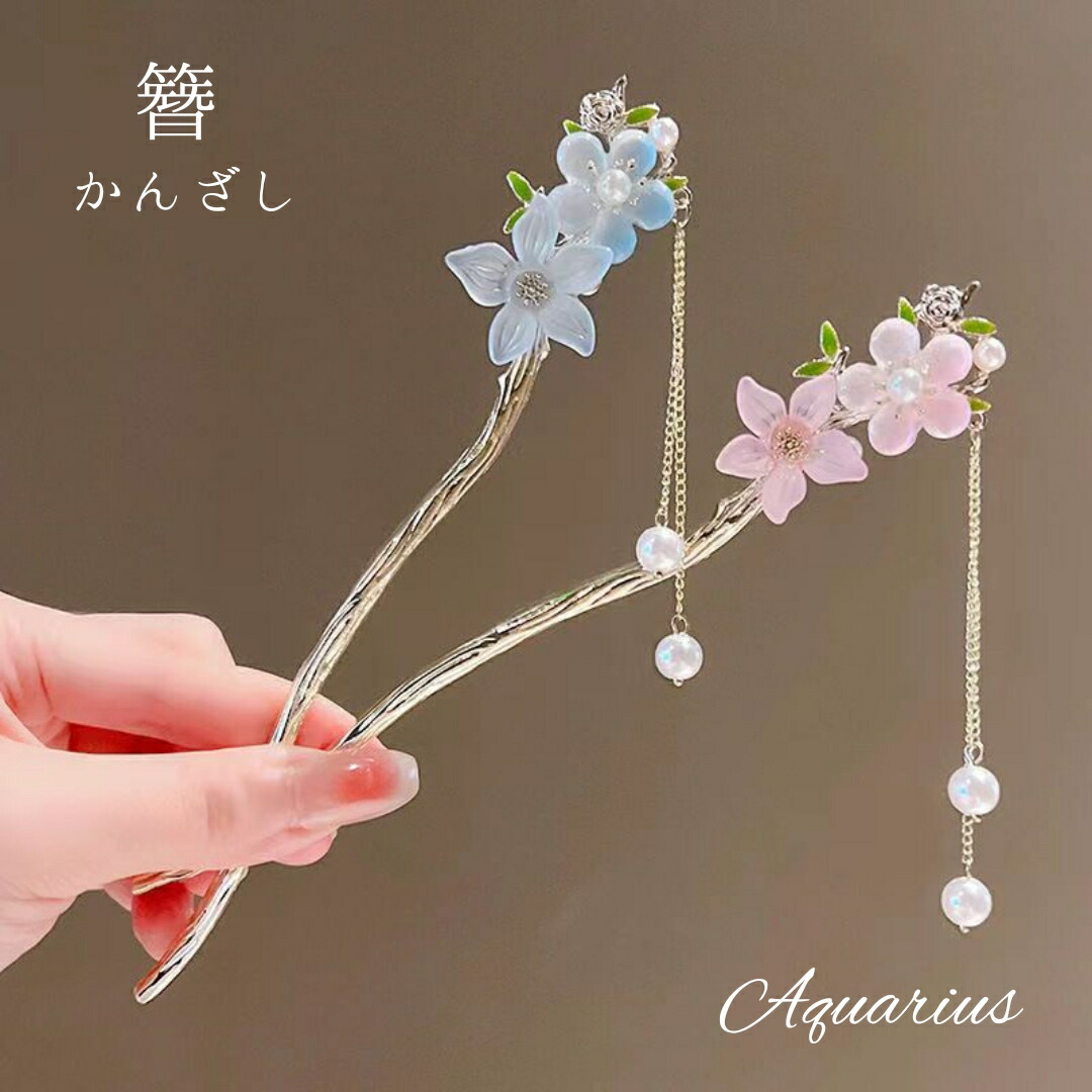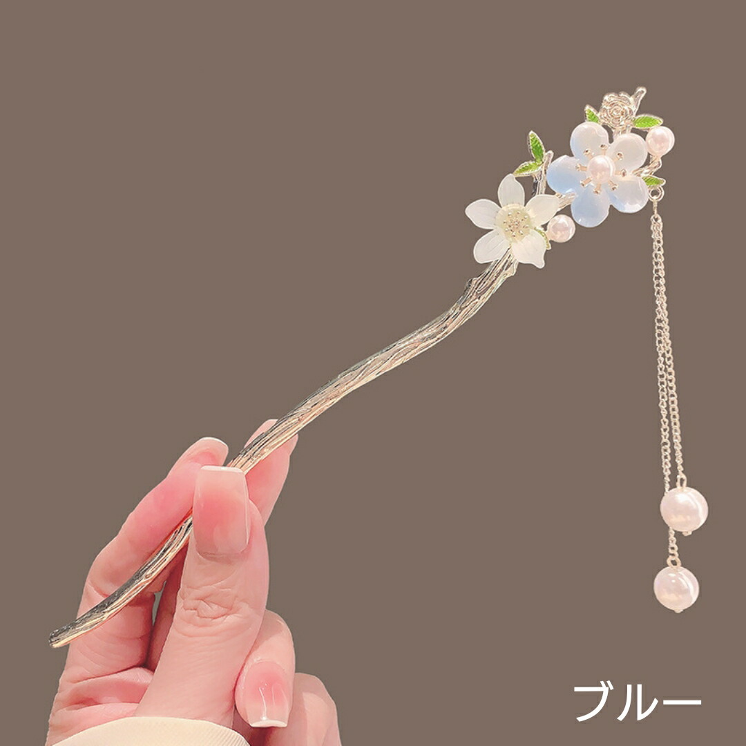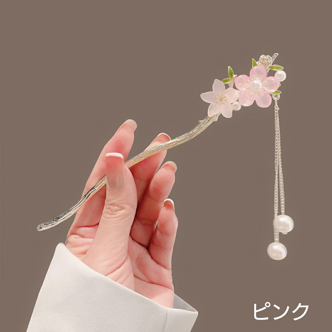桜 と パール の 揺れる 簪 ピンク レディースジュエリー アクセサリー ヘアアクセサリー その他 続々登場 ピンク ブルー