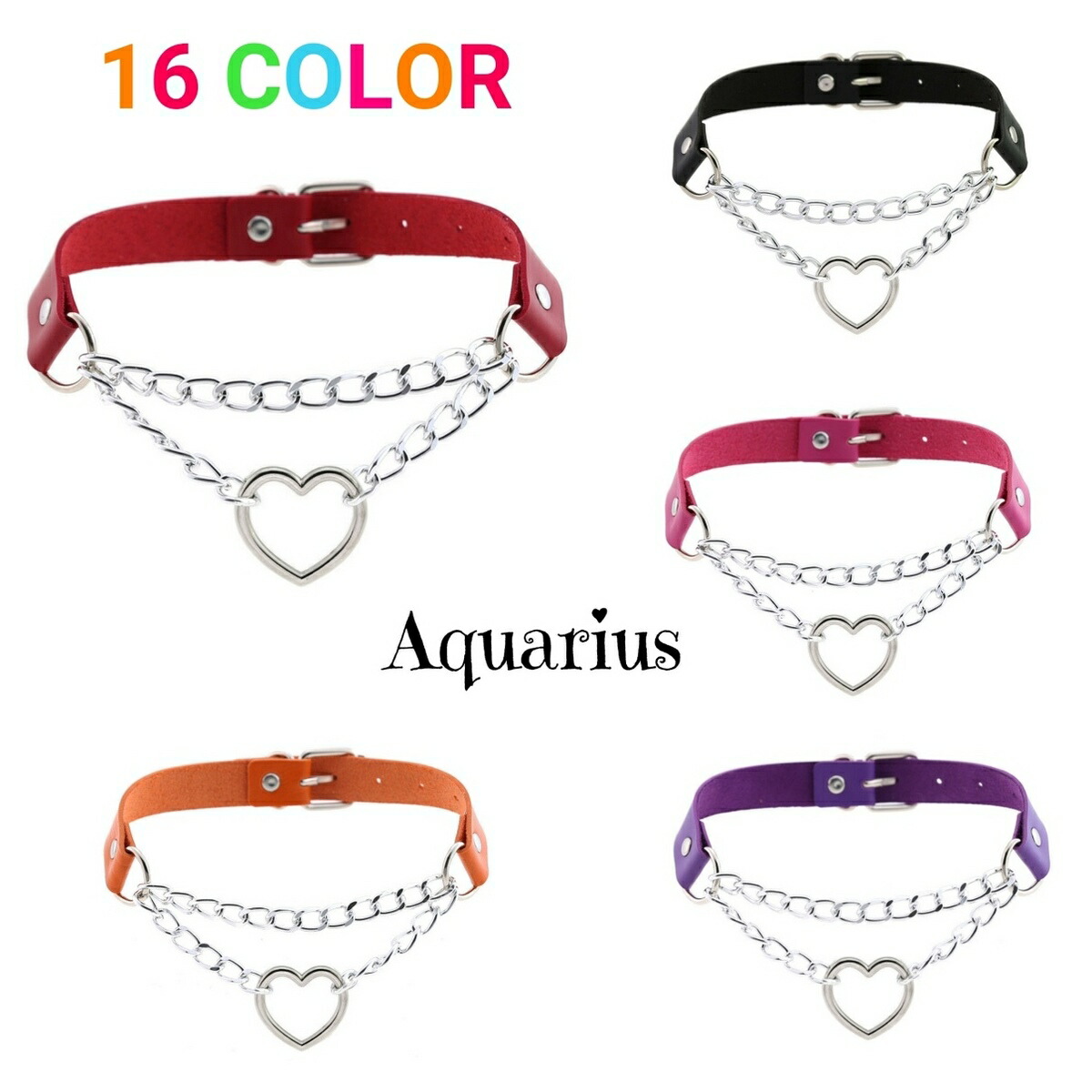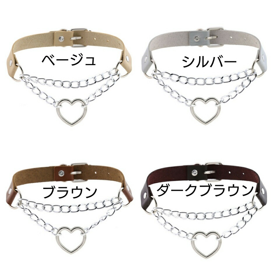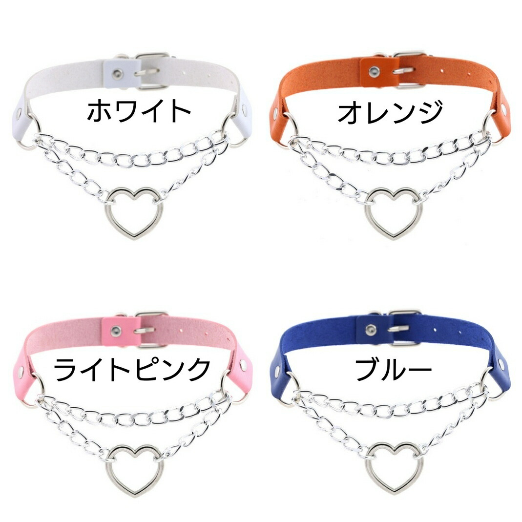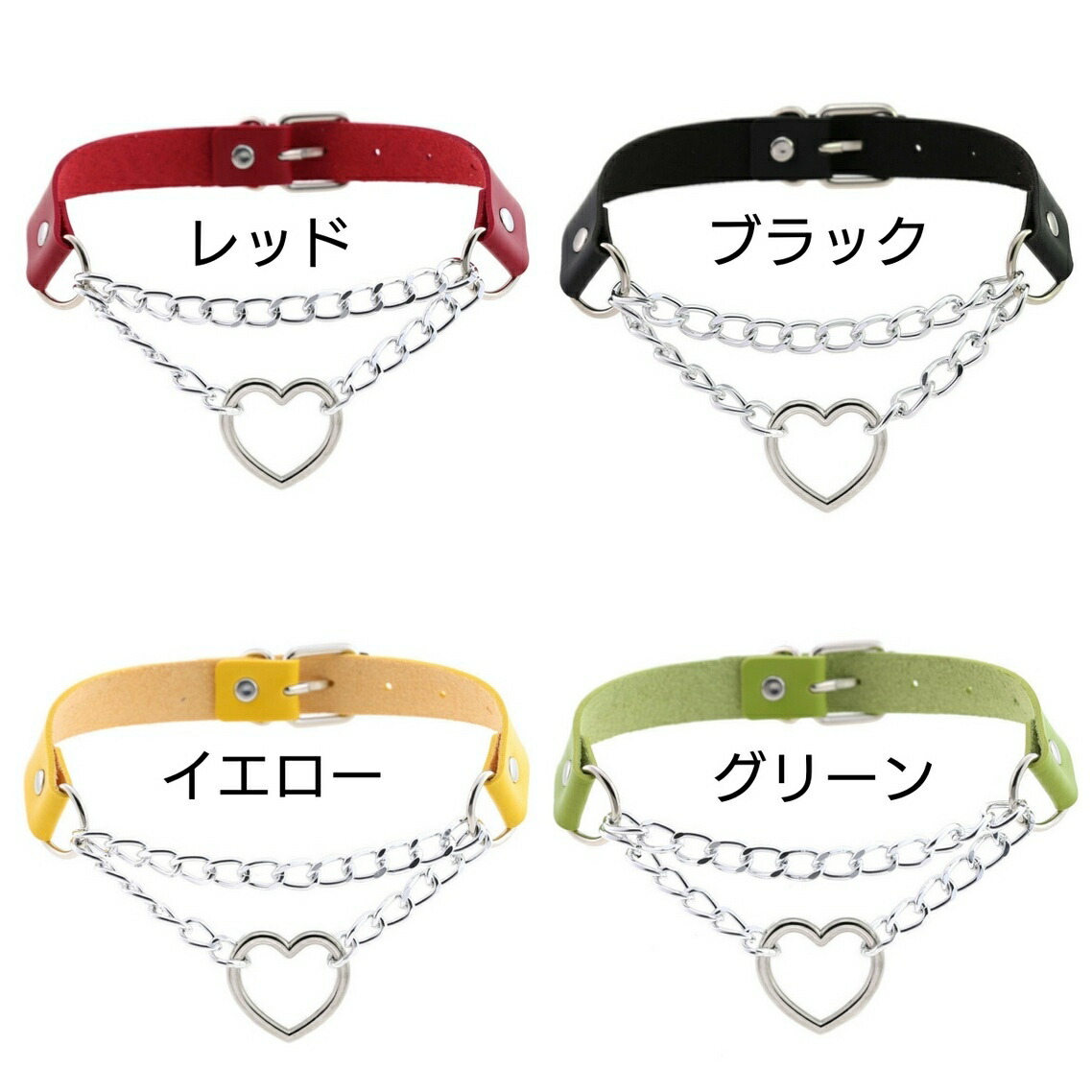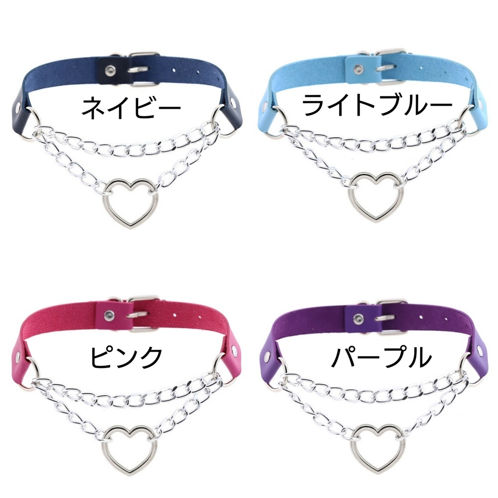 カラバリ チェーン 付き ハート レザ ジュエリー アクセサリー 新作 レッド ブラック イエロー グリーン ネイビー ライトブルー ピンク パープル ベージュ シルバー ブラウン ダークブラウン ホワイト オレンジ ライトピンク ブルー