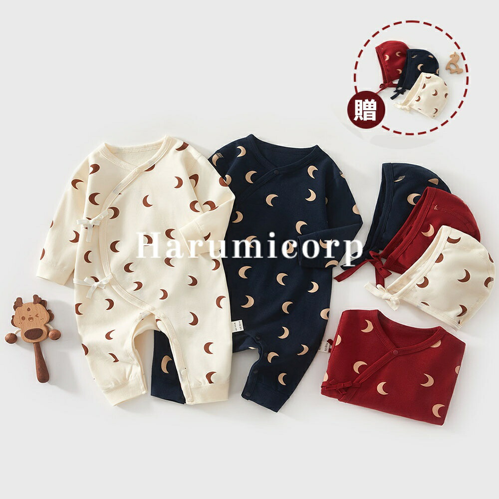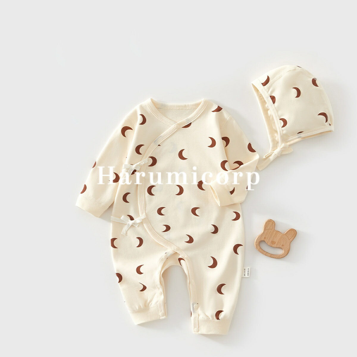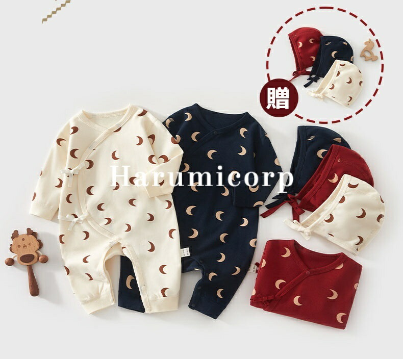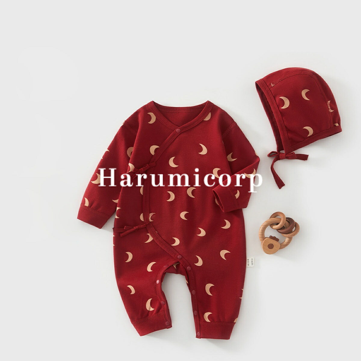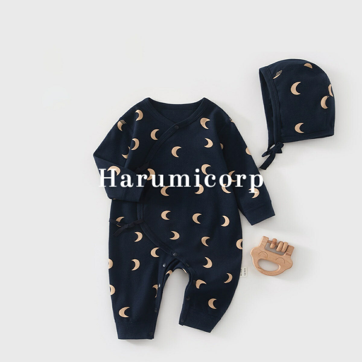 帽子付き ロンパース 長袖 月 女の子 ベビー ベビー服 ファッション カバーオール ロンパース 人気 ベージュ レッド ブルー 52cm 59cm 66cm 73cm 80cm