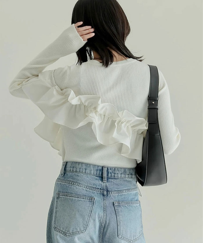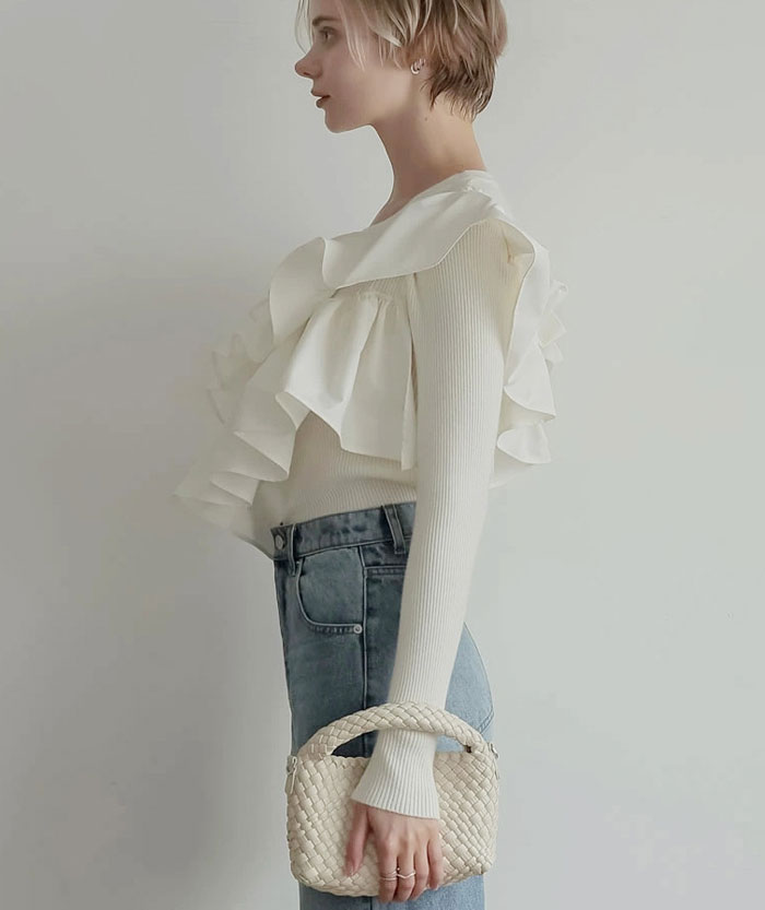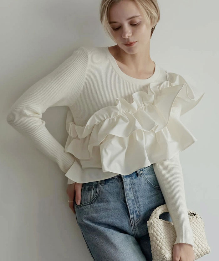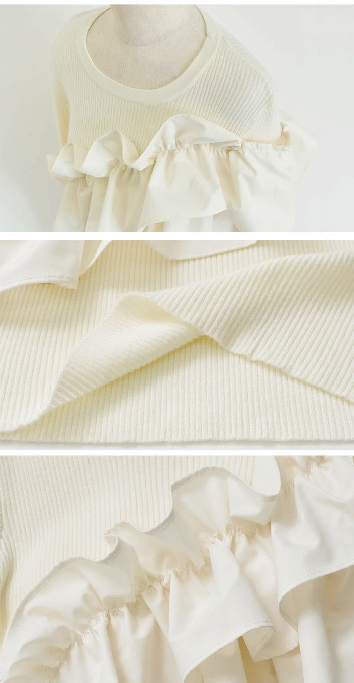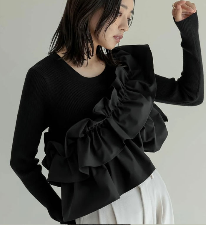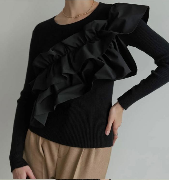 セーター フリル プルオーバー 春 秋 トップス ニット セーター セーター 早い者勝ち ブラック アイボリー