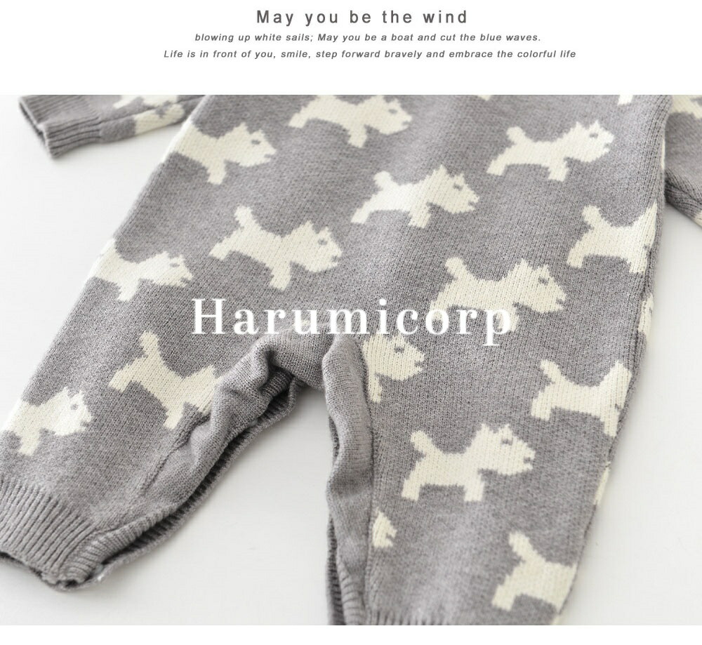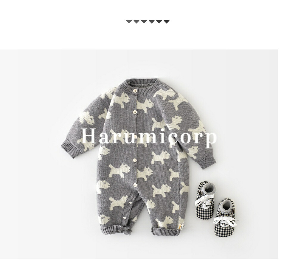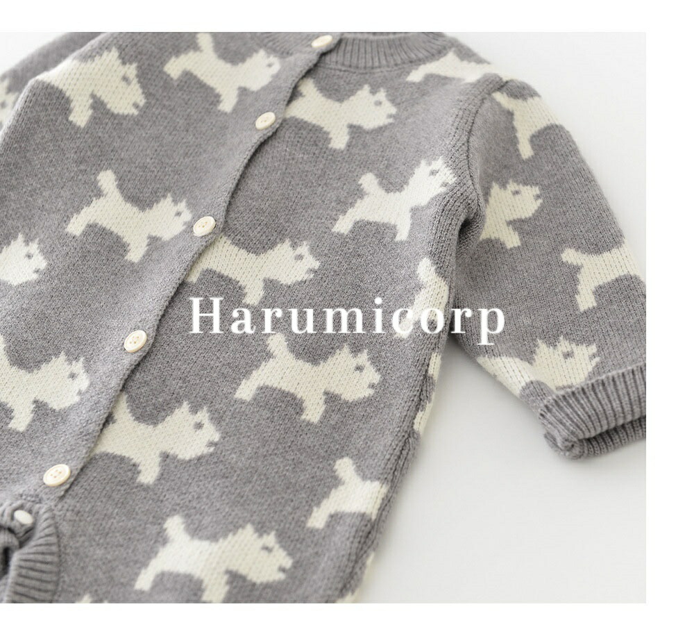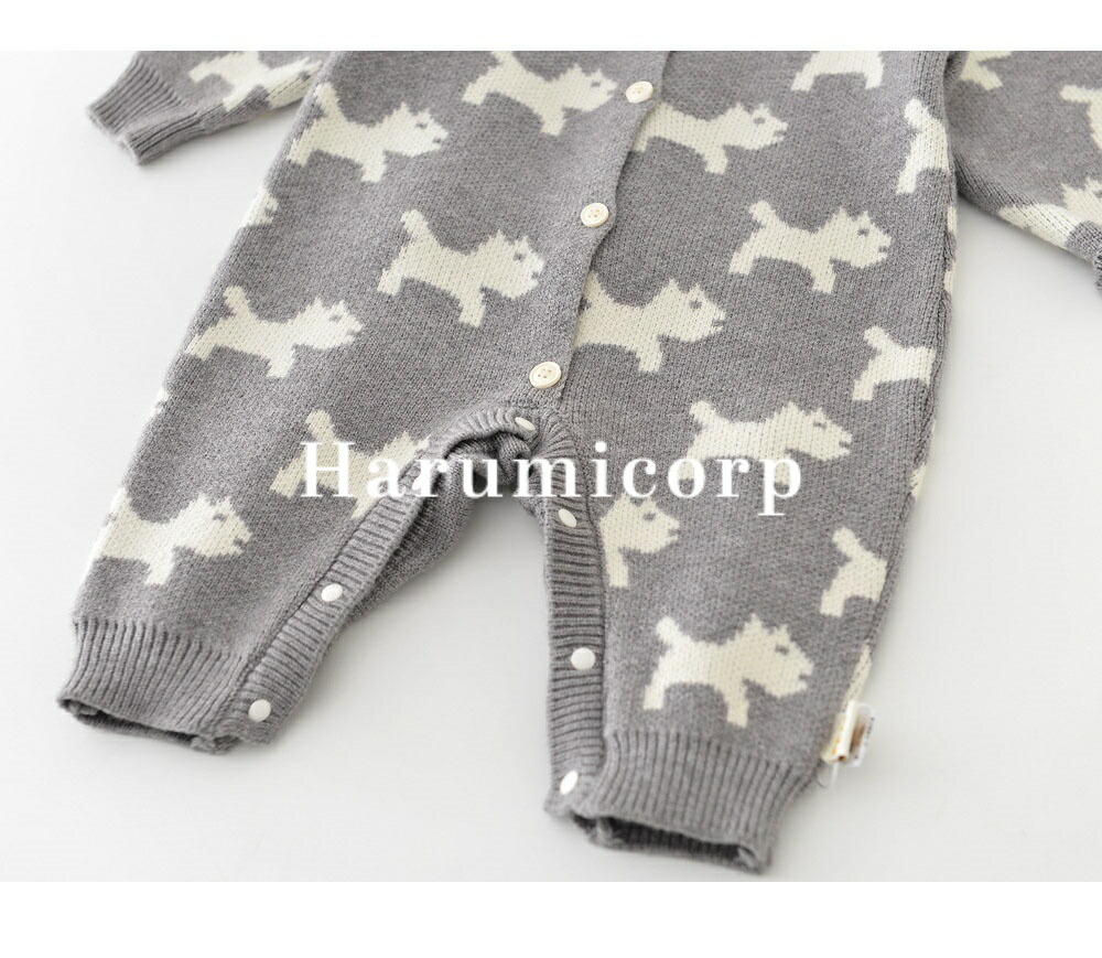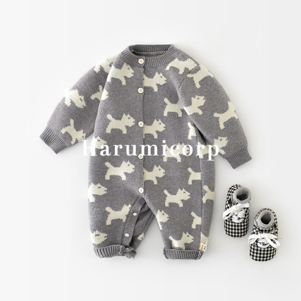 ニット ロンパース 犬 総柄 新生児 キッズ ベビー マタニティ 人気 66cm 73cm 80cm 90cm