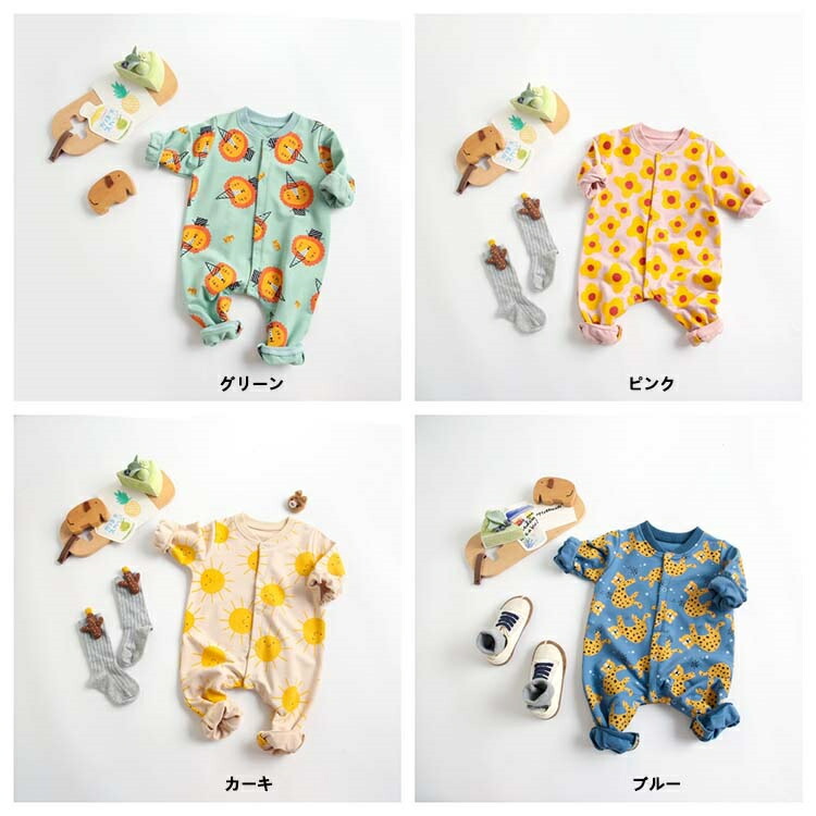 ロンパース 長袖 ベビー服 女の子 男 キッズ ベビー マタニティ 人気 グリーン ピンク カーキ ブルー ( 0-6m)推奨身長59cm ( 6-12m)推奨身長66cm ( 12-18m)推奨身長73cm ( 18-24m)推奨身長80cm ( 2-3)推奨身長90cm