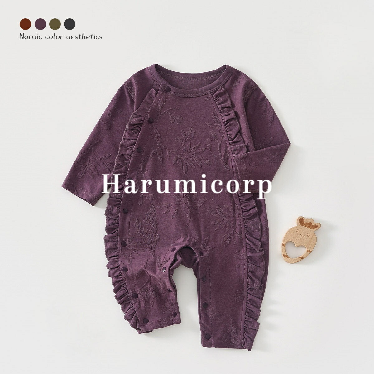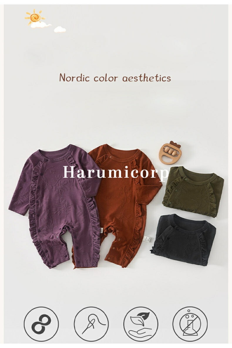 ロンパース ベビー 女の子 男の子 ベ ベビー ベビー服 ファッション カバーオール ロンパース 人気 グリーン パープル キャラメル ダックグレー 59cm 66cm 73cm 80cm 90cm