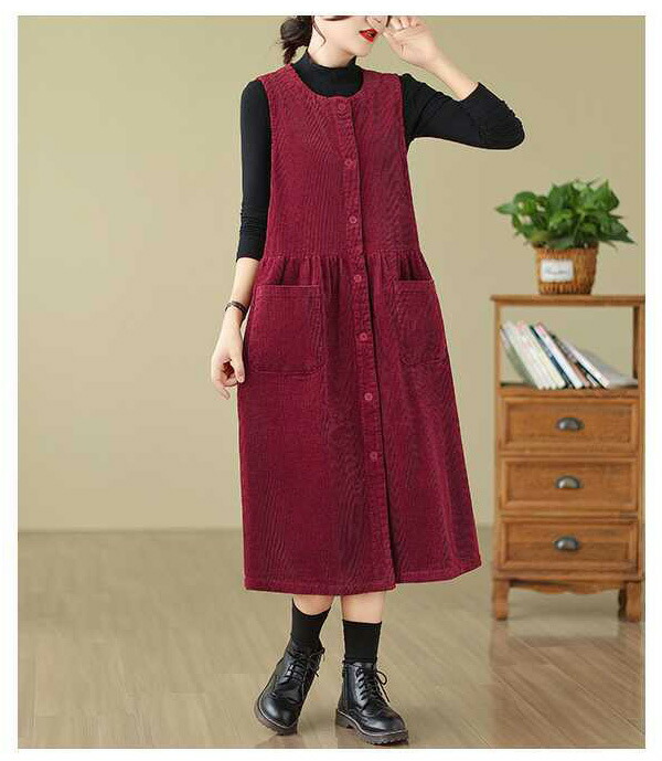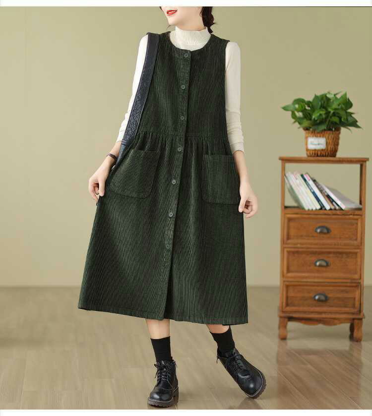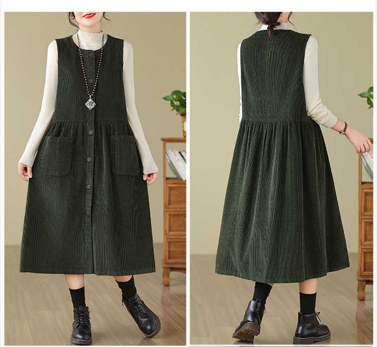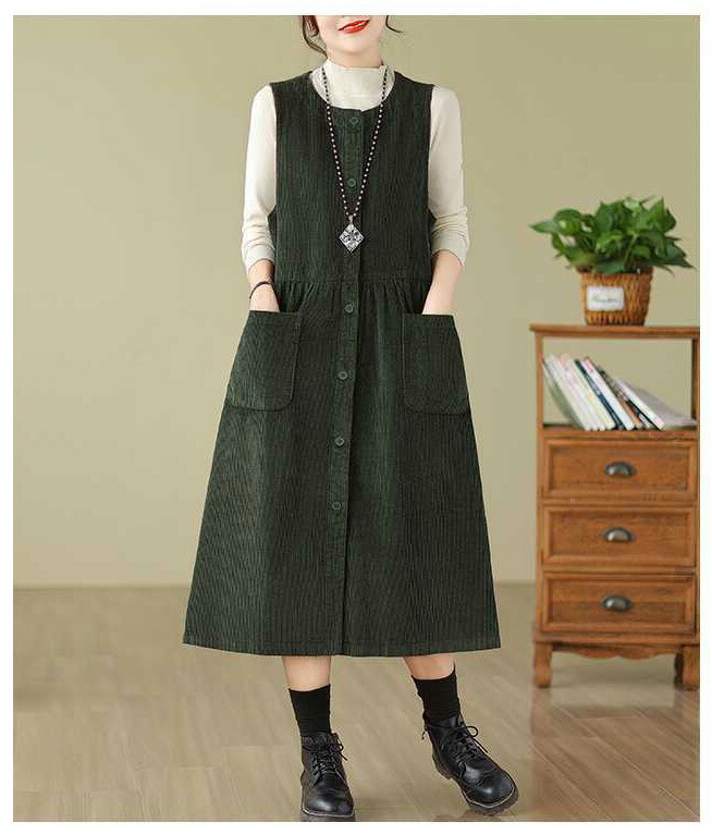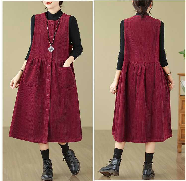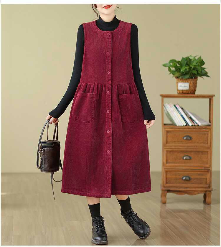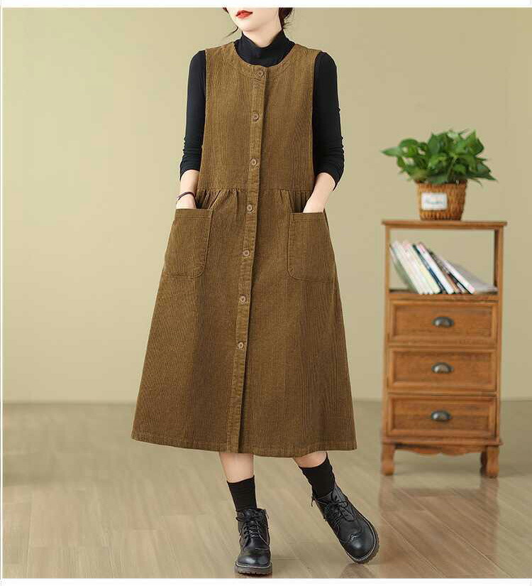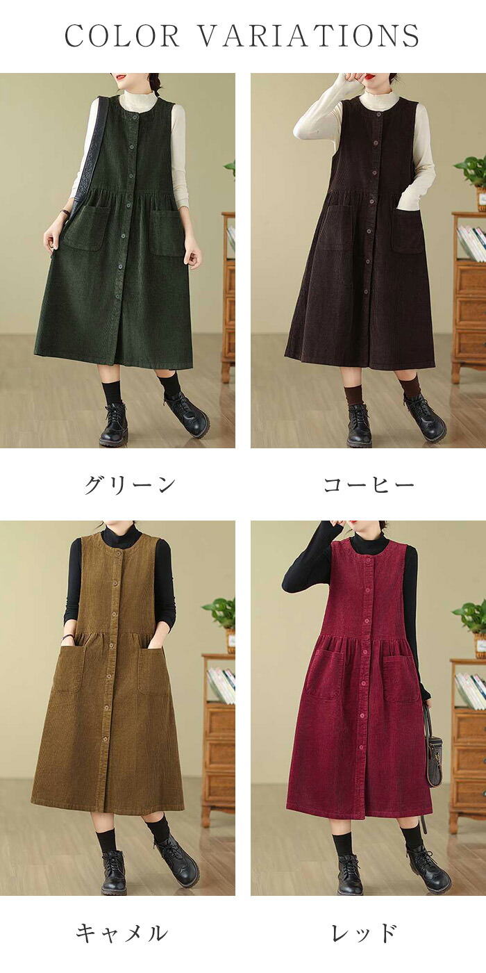 ジャンパースカート ロングワンピース グリーン コーヒー キャメル レッド M L XL 2XL