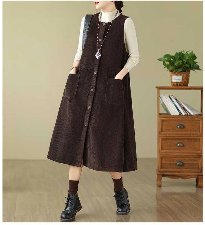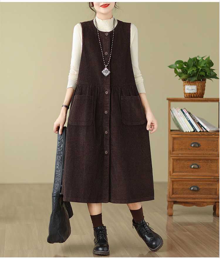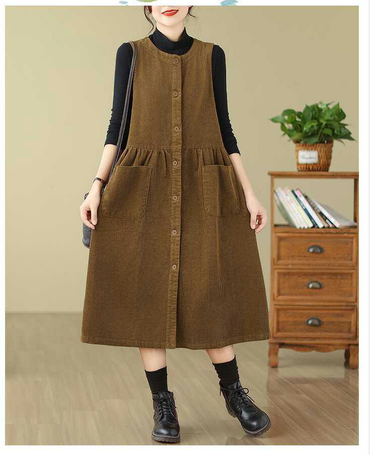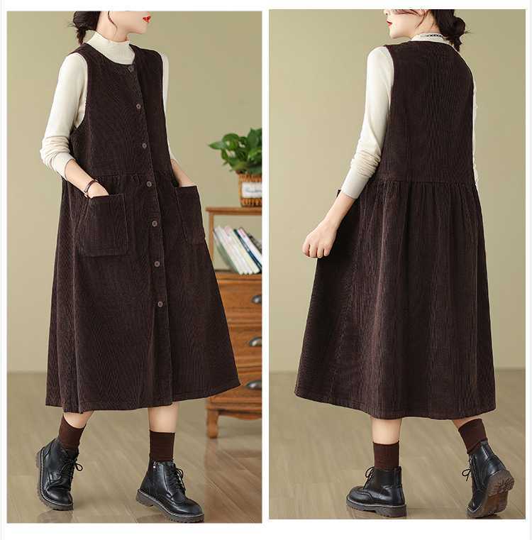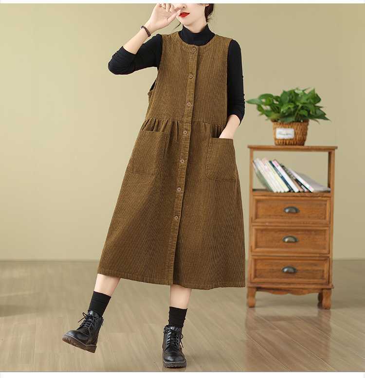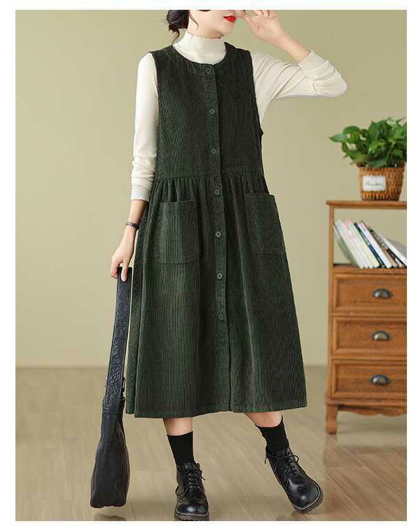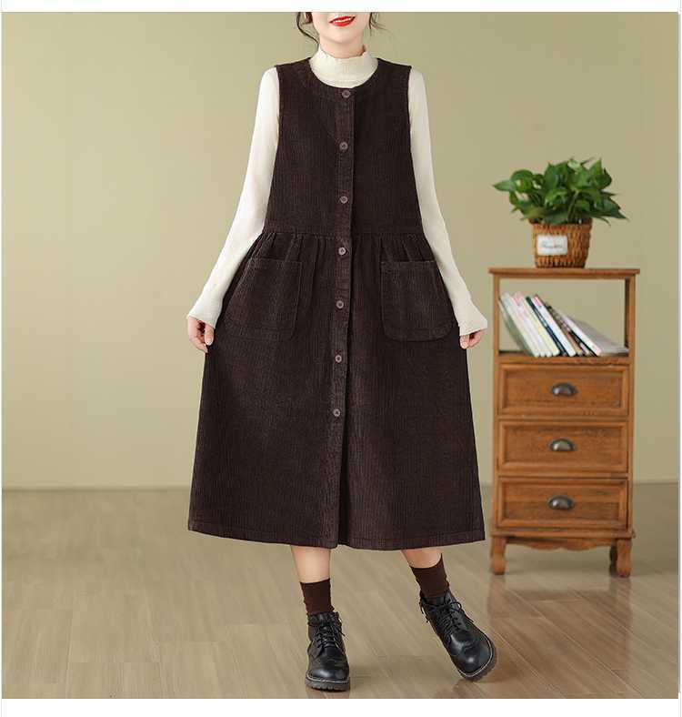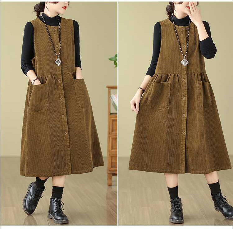 ジャンパースカート ロングワンピース グリーン コーヒー キャメル レッド M L XL 2XL