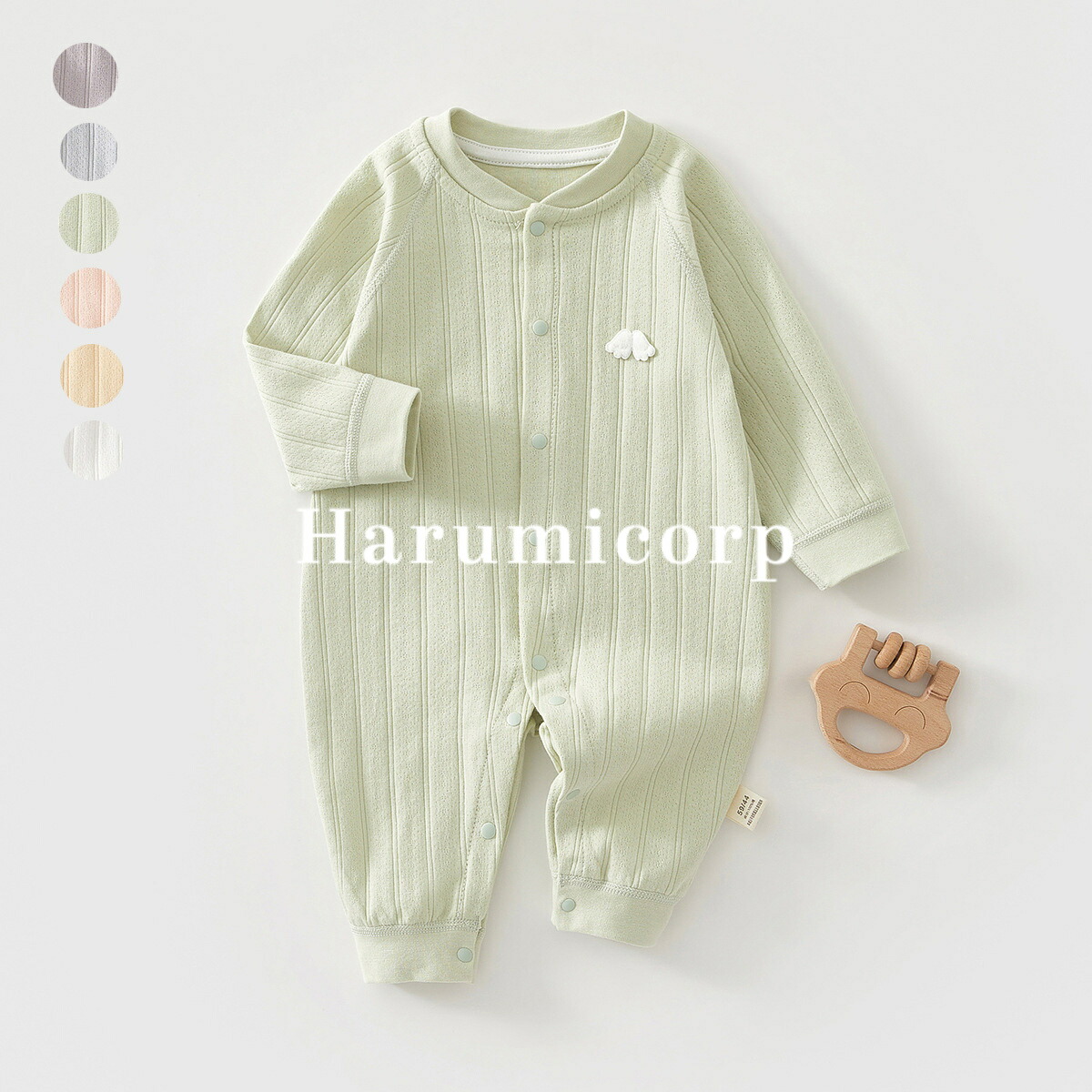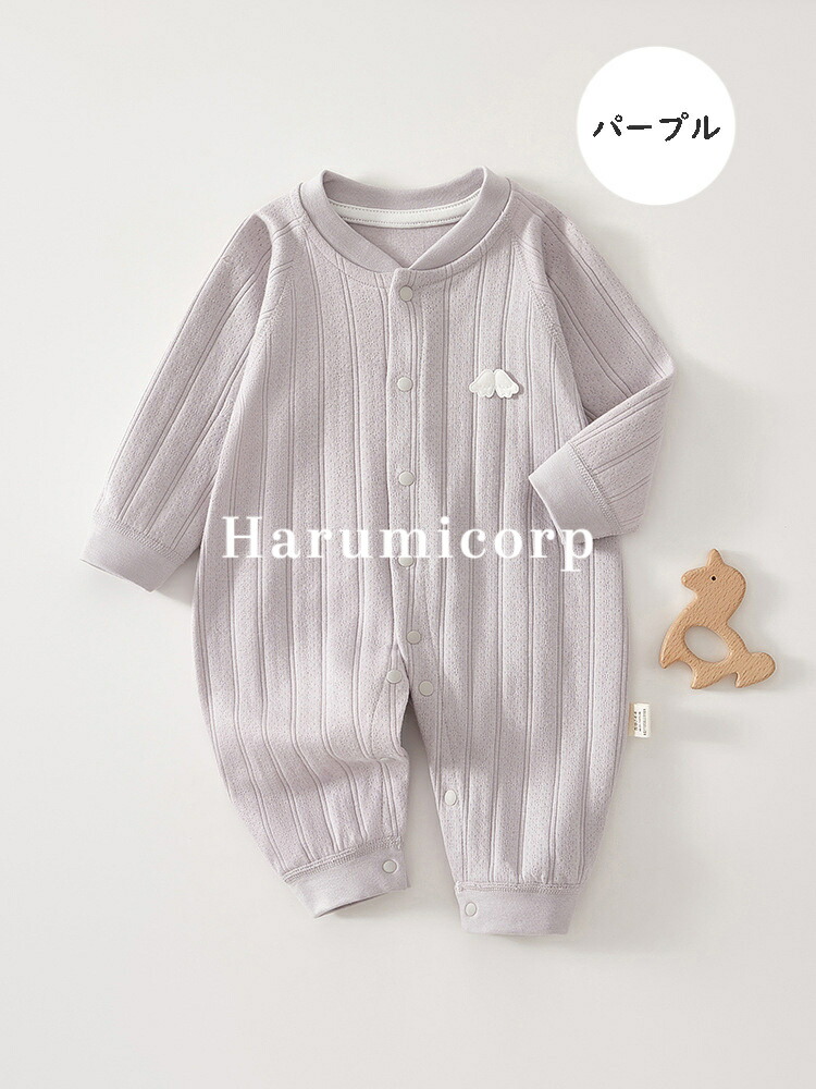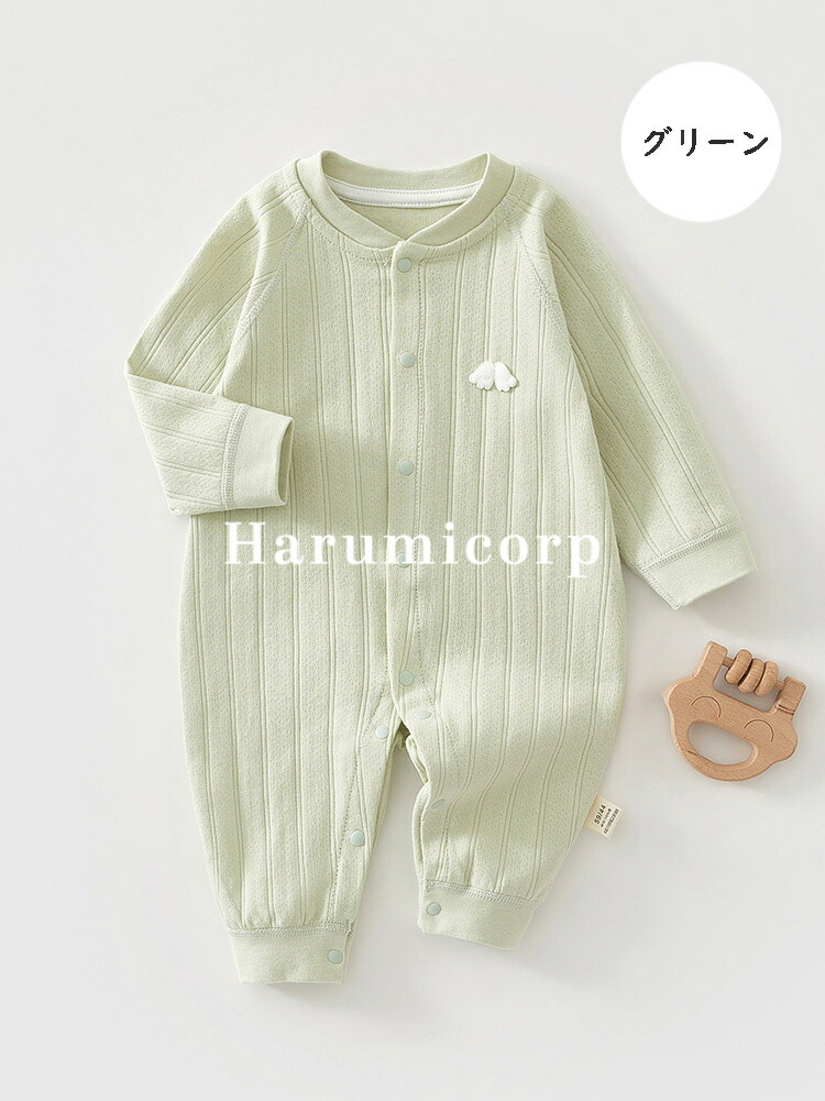 ロンパース 長袖 綿 ベビー服 女の子 ベビー ベビー服 ファッション カバーオール ロンパース 通販 グリーン ピンク イエロー ブルー ホワイト パープル 59cm 66cm 73cm 80cm 90cm