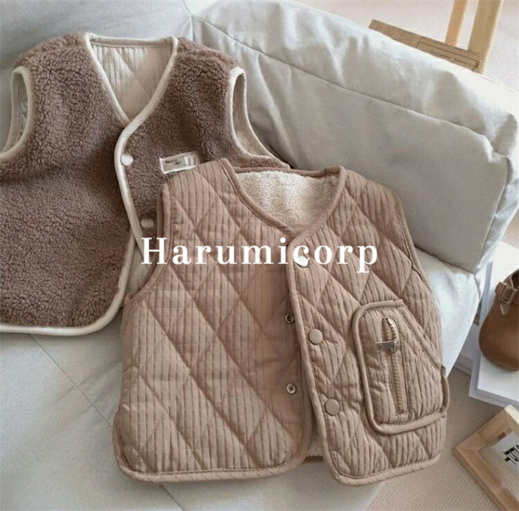 両面着 ベビー ベスト 裏起毛 あった キッズ ベビー マタニティ 早い者勝ち キャラメル オフホワイト 80cm 90cm 100cm 110cm 120cm 130cm