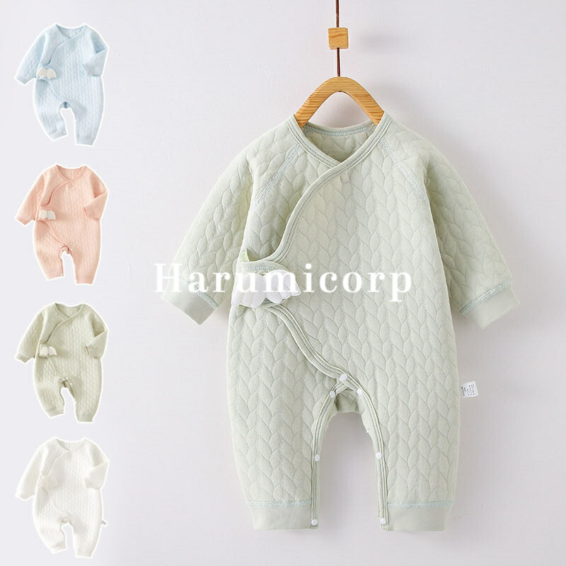 ロンパース 長袖 女の子 男の子 秋冬 キッズ ベビー マタニティ 特集 ホワイト ブルー ピンク グリーン イエロー 52cm 59cm 66cm