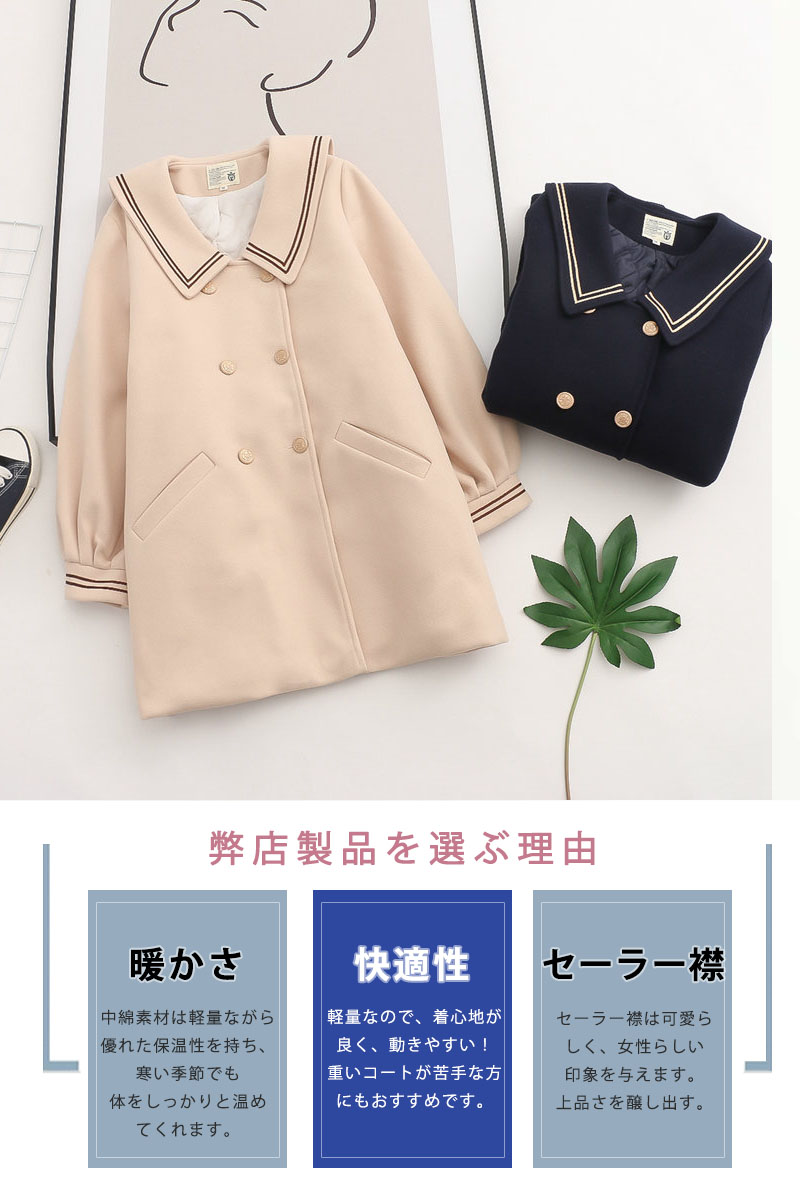 セーラー襟 ダッフルコート 学生 スク レディースファッション 豊富 ベージュ ネイビー S M L