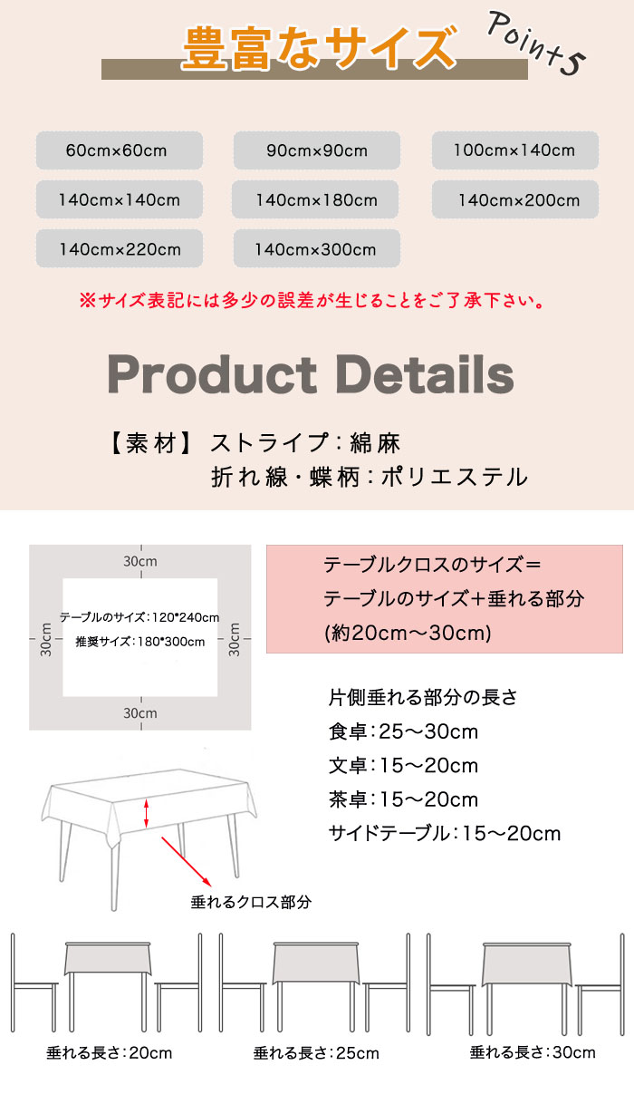テーブルクロス リネン テーブルマット 配膳用品 キッチンファブリック テーブルクロス 早い者勝ち ストライプ 折れ線 蝶柄 60*60cm 90*90cm 100*140cm 140*140cm 140*180cm 140*200cm 140*220cm 140*300cm