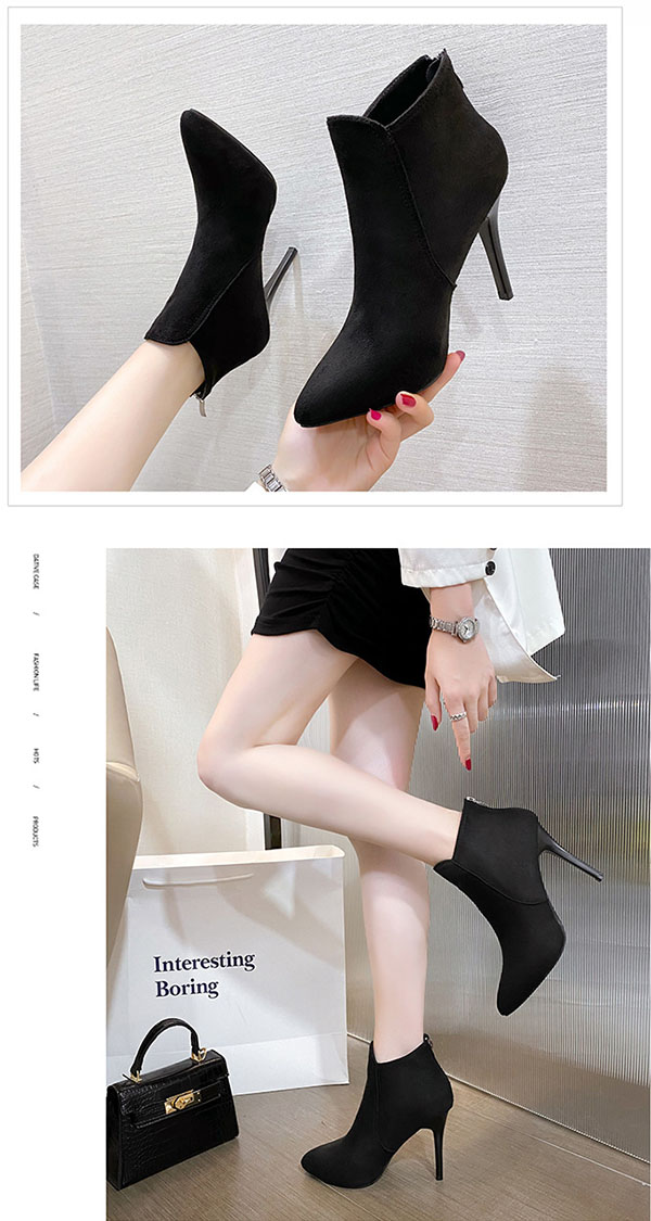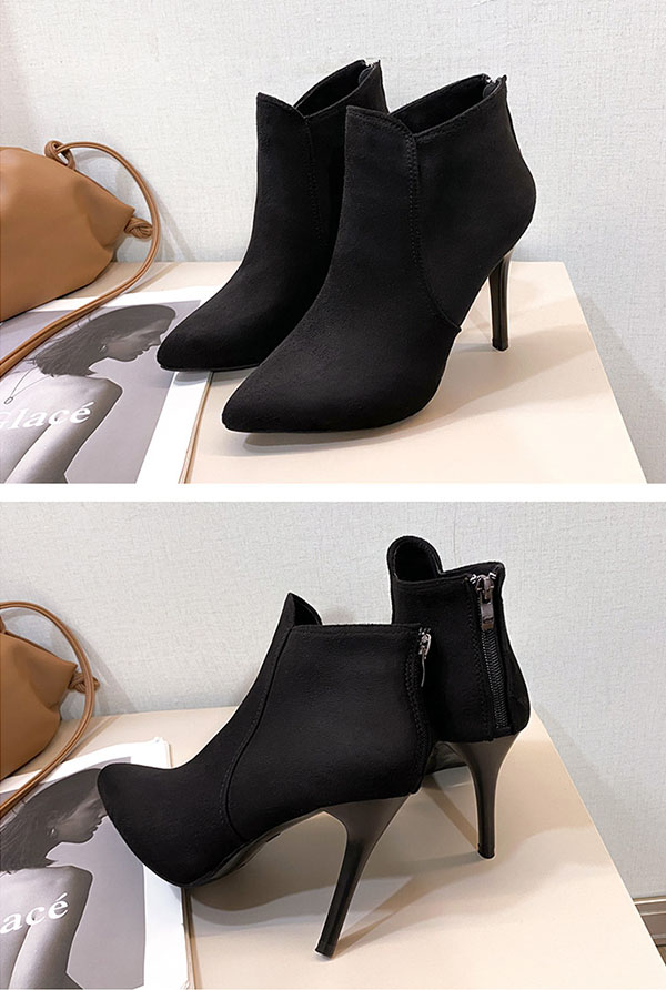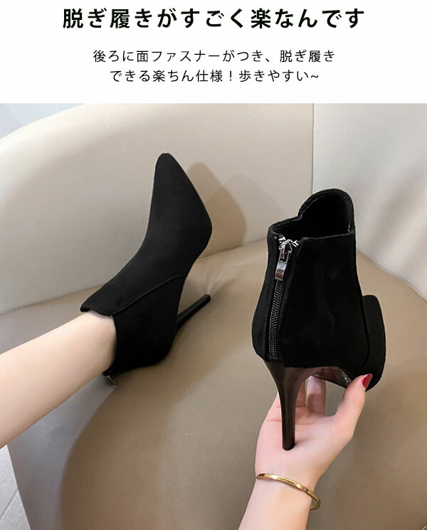 ショートブーツ ブーツ レディース 秋冬 ヒール ハイヒール ヒール10cm 美脚 疲れない 安定感 歩きやすい ポインテッドトゥ 裏起毛 おしゃれ 黒 ファスナー 履きやすい 大きいサ レディース靴