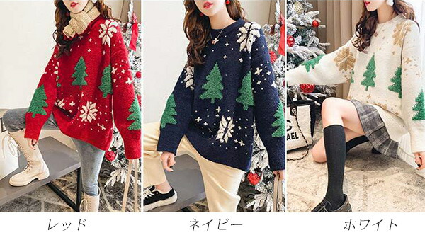 クリスマスツリー ニットセーター ニッ レディースファッション 豊富 ホワイト レッド ネイビー