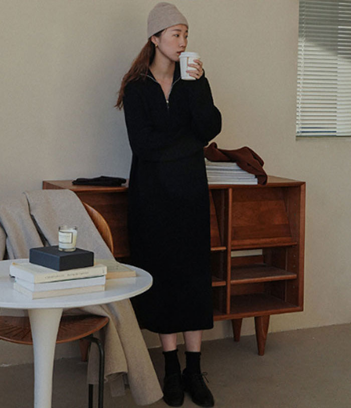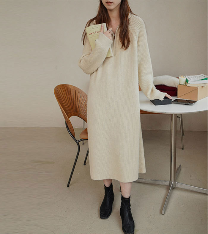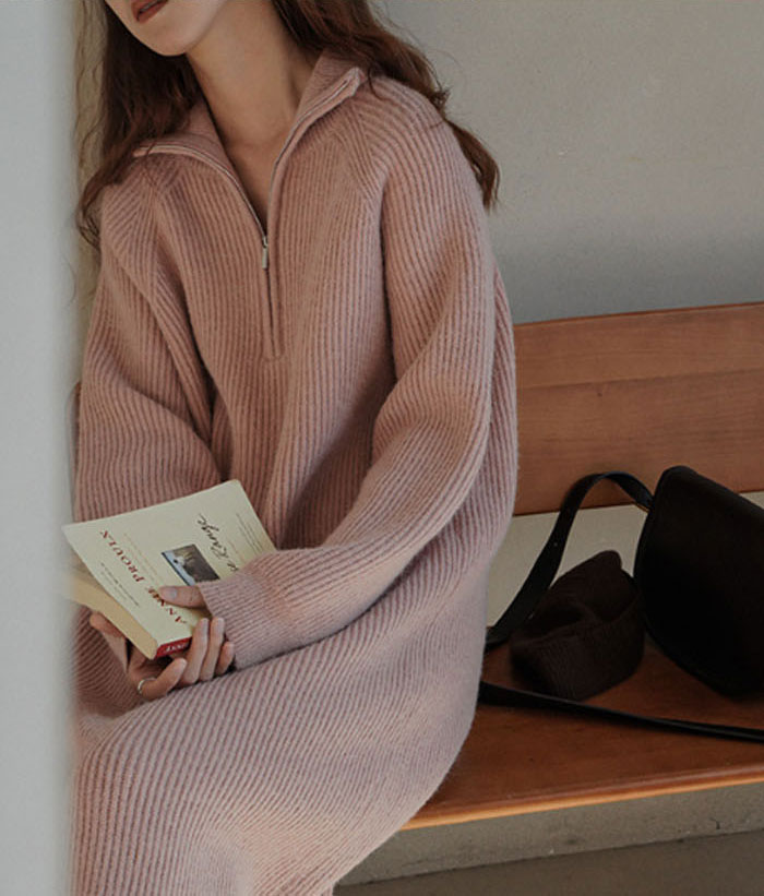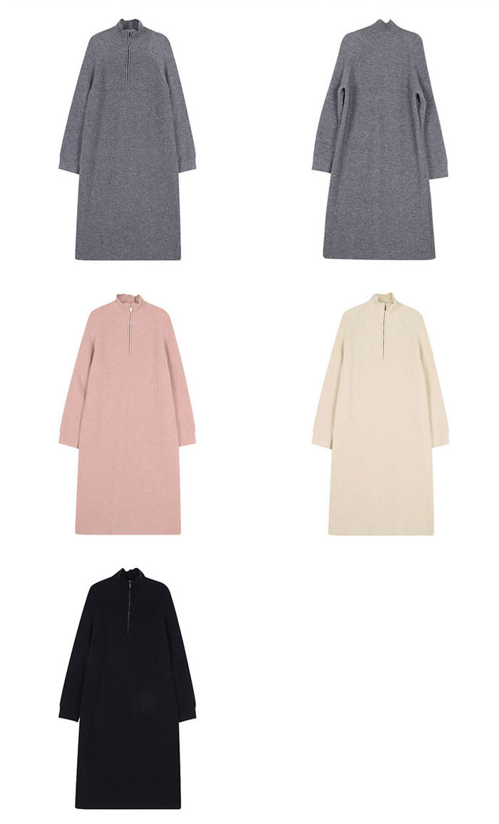 ハーフジップ リブ ニットワンピース レディースファッション 新登場! ブラック グレー ピンク ベージュ