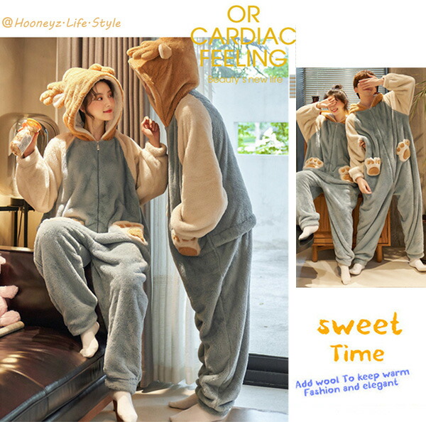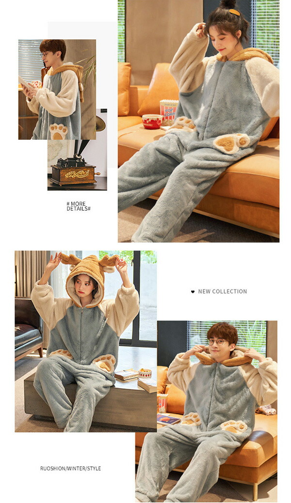 ルームウェア カップル もこもこ パジ ユニセックス ナイトウェア ルームウェア 豊富 女性用 男性用 M L XL 2XL 3XL