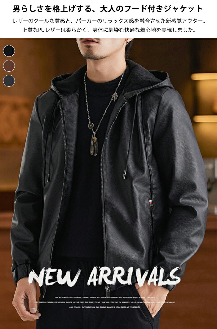 レザージャケット メンズ フード付き メンズファッション 早い者勝ち ダークグレー ブラック ブラウン M L XL 2XL 3XL 4XL 5XL 6XL