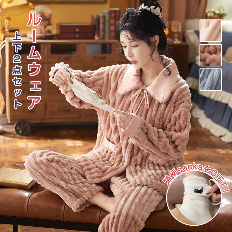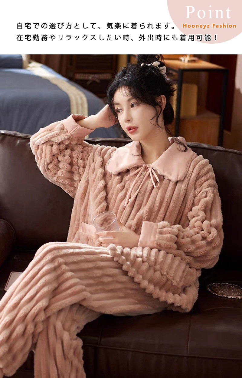 もこもこ パジャマ レディース ルーム レディース ナイトウェア ルームウェア ルームウェア 上下セット 人気 ライトピンク ダークピンク M L XL