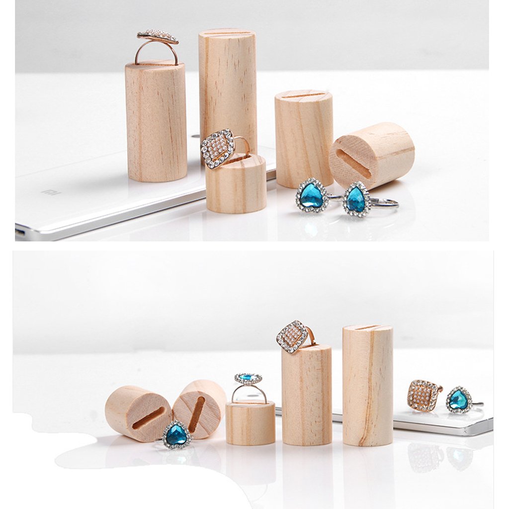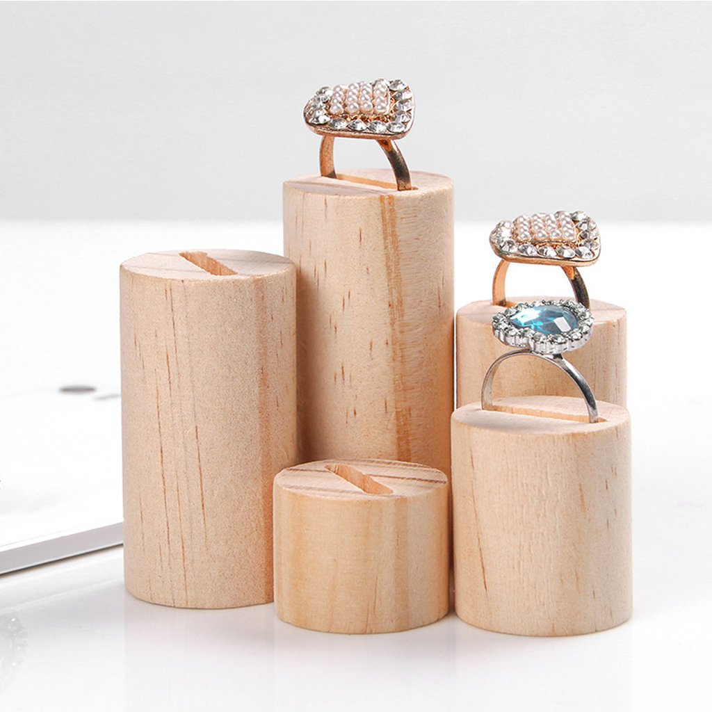円筒形の天然未塗装木製リングディスプレ
