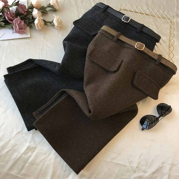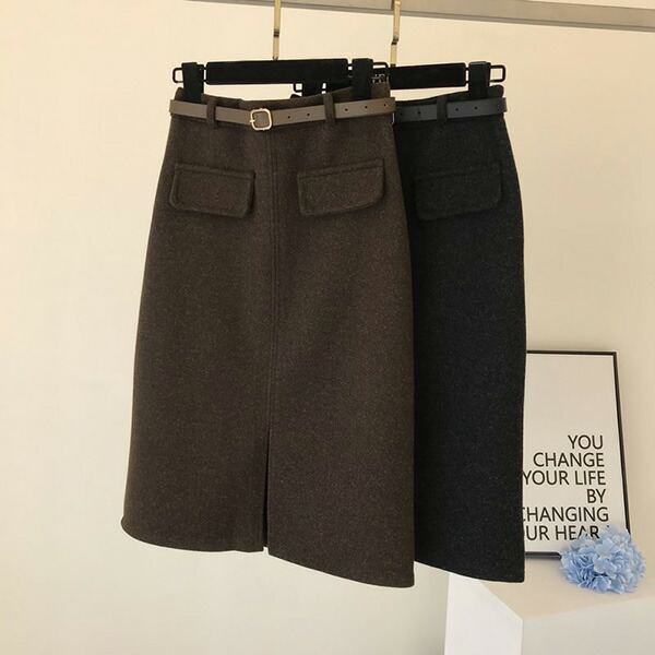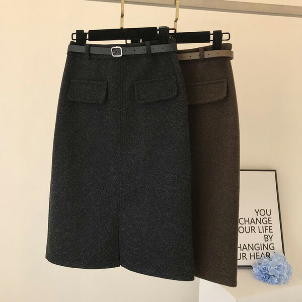スカート 秋冬 厚手 レディース ベル ボトムス スカート 人気 コーヒー ブラック S M L XL 2XL