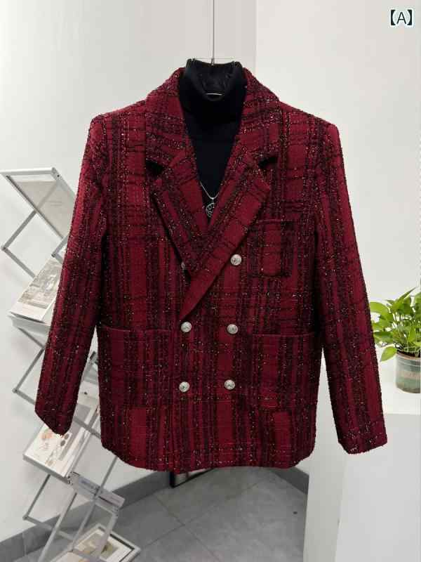 ジャケット コート メンズ 大きいサイズ おしゃれ 秋冬 ダブル 肩パッド 赤 黒メンズファッション チェック
