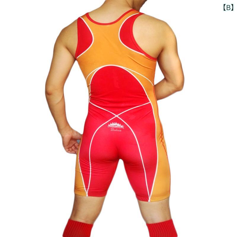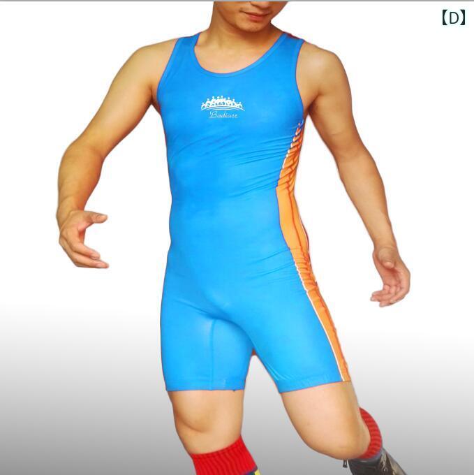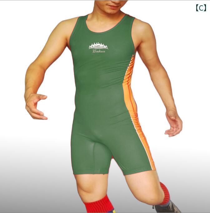 レスリング ウェア シングレット スーツ スポーツ トレーニング メンズ ウエイトリフティング ブルー レッド グリーン タイツ