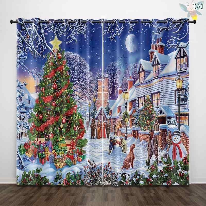 カーテン 高遮光 クリスマス柄 デジタ A:HQQ-DKCL0008 B:HQQ-DKCL0009 C:HQQ-DKCL0010 D:HQQ-DKCL0011 E:HQQ-DKCL0012 140x160cm 214x160cm 264x160cm 183x214cm 214x214cm 264x214cm 150x166cm 210x230cm