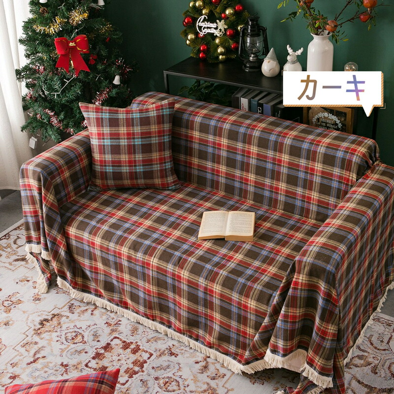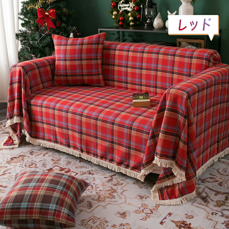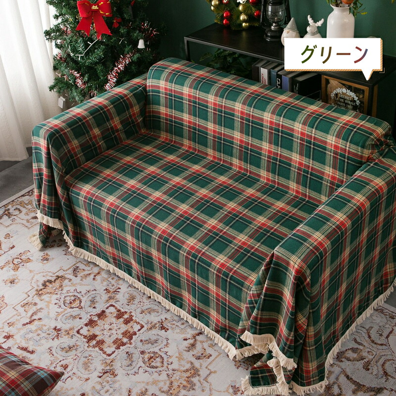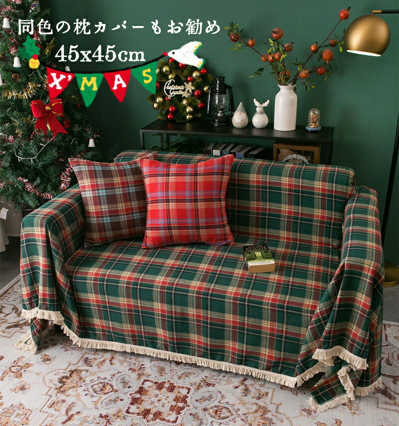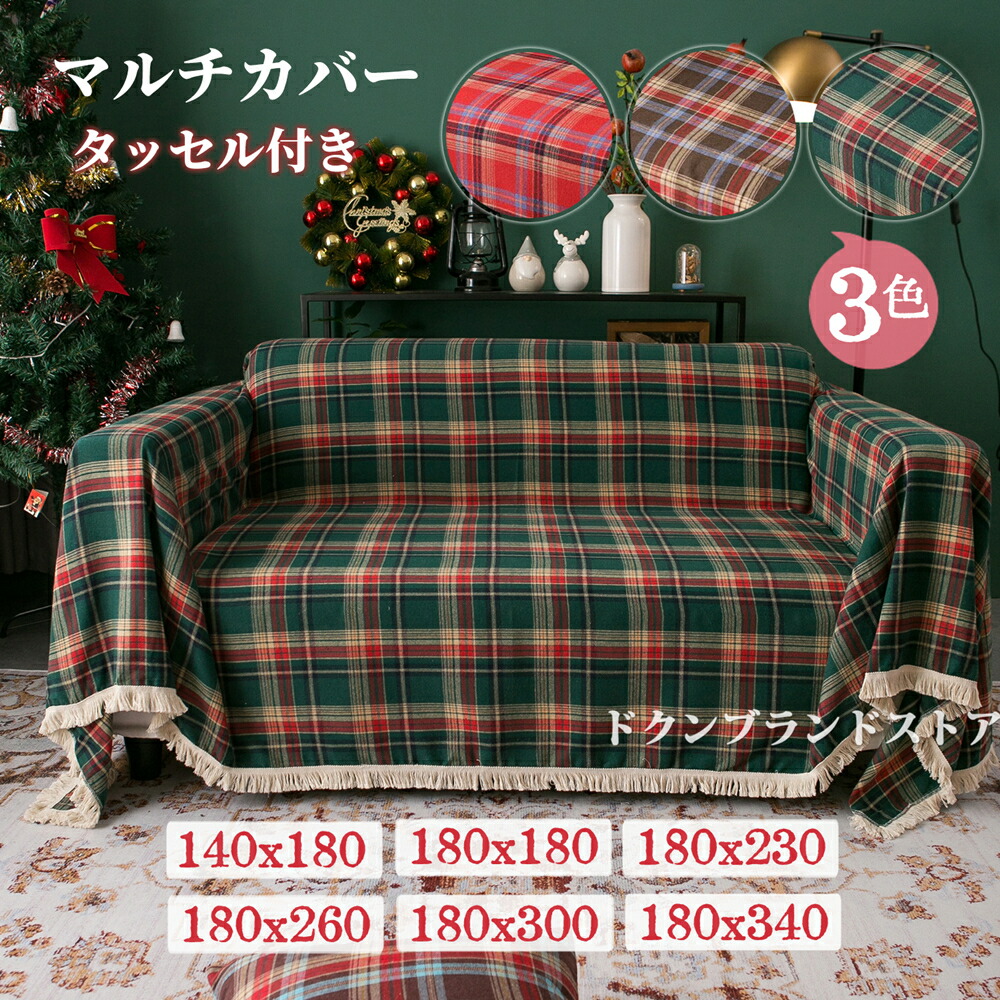 クリスマス風 ソファーカバー マルチカ レッド グリーン カーキ 140x180 180x180 180x230 180x260 180x300 180x340 枕カバー/2枚セット