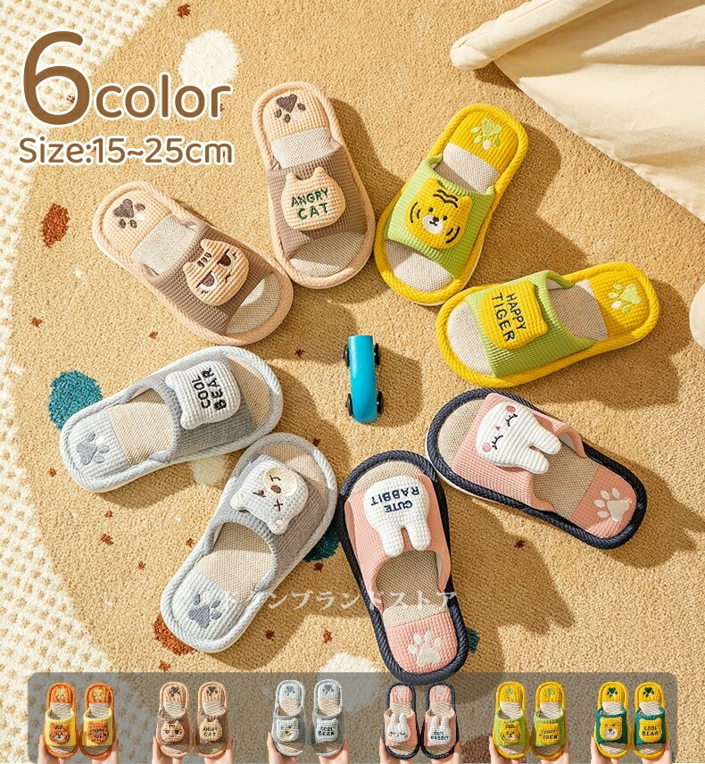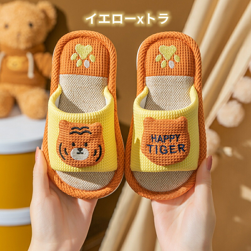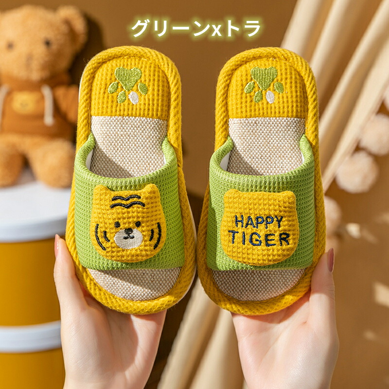 麻 子ども 室内 スリッパ オールシー 生活雑貨 スリッパ ルームシューズ スリッパ 人気 ピンクxウサギ イエローxトラ グリーンxトラ ダークグリーンxクマ グレーxクマ 24-25#内寸15cm 26-27#内寸16.5cm 28-29#内寸18cm 30-31#内寸19cm 32-33#内寸20cm 34-35#内寸21cm 36-37#内寸23.5cm 38-39#内寸24.5cm 40-41#内寸25.5cm