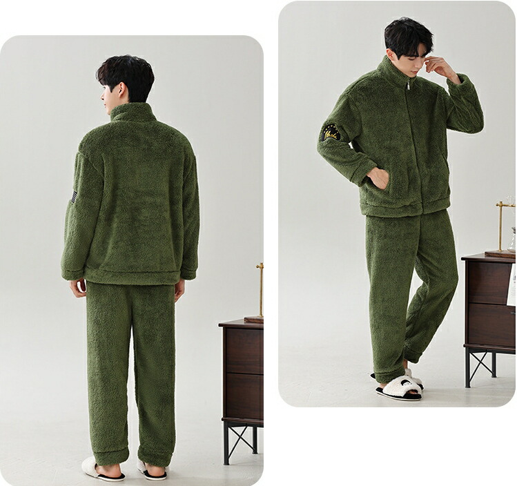 冬用 モコモコ ルームウェア パジャマ インナー 下着 ナイトウエア 豊富な品揃え フォグブルー ブルー グリーン カーキー L XL XXL XXXL