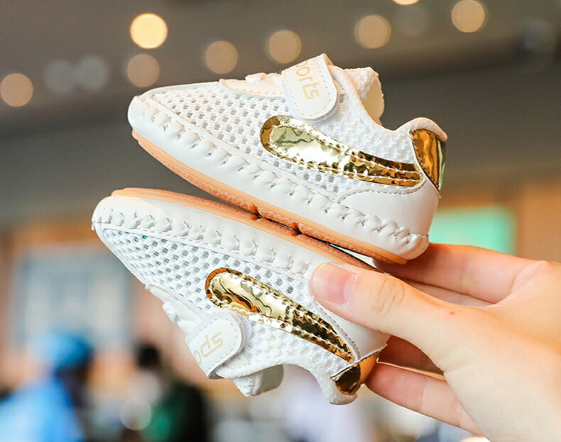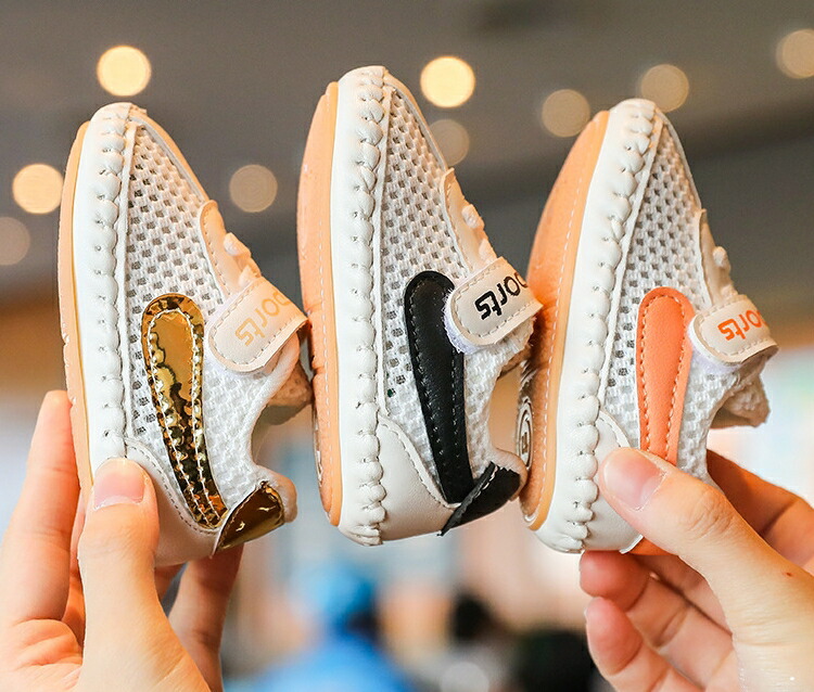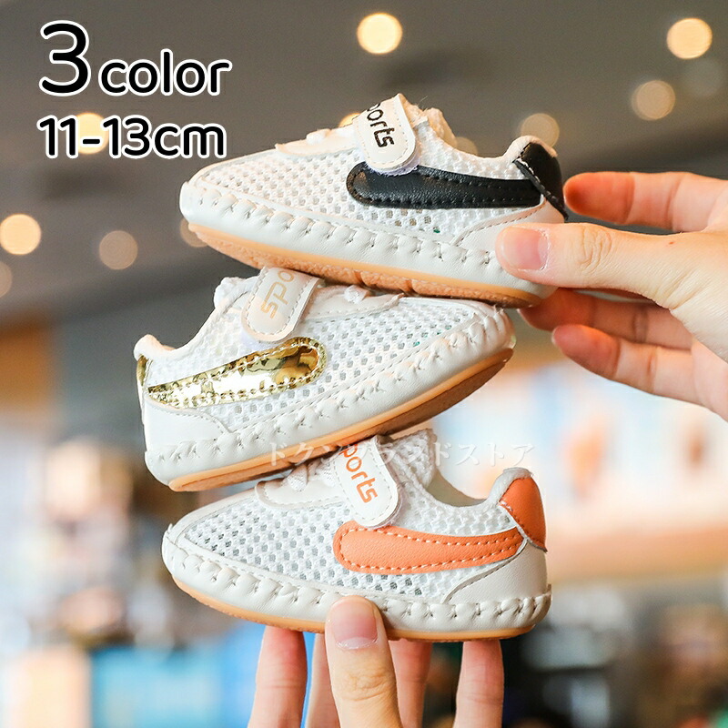 ベビーシューズ 靴 スニーカー メッシ 14#内寸11cm 15#内寸11.5cm 16#内寸12cm 17#内寸12.5cm 18#内寸13cm ブラック オレンジ ゴールド