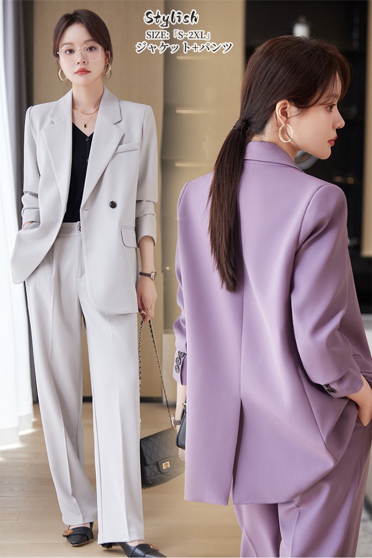 おしゃれ セットアップ スーツ レディ スーツ セットアップ パンツスーツ 特集 パープル グレー S M L XL 2XL