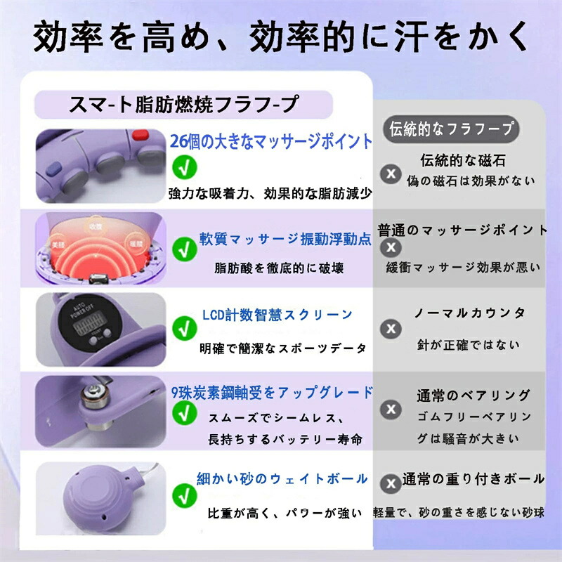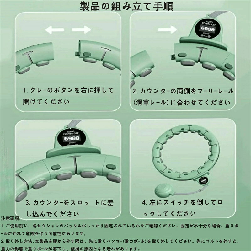 スマートフラフープ サイズ調節可能で大 おもちゃ スポーツトイ アクショントイ フラフープ 豊富 パープル グリーン ホワイト S(体重45kg以内) M(体重70kg以内) L(体重100kg以内)