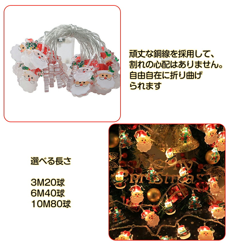 クリスマス飾り ライト クリスマス L A:ツリー B:サンタクロース C:雪だるま D:ミックス 3M20球 6M40球 10M80球