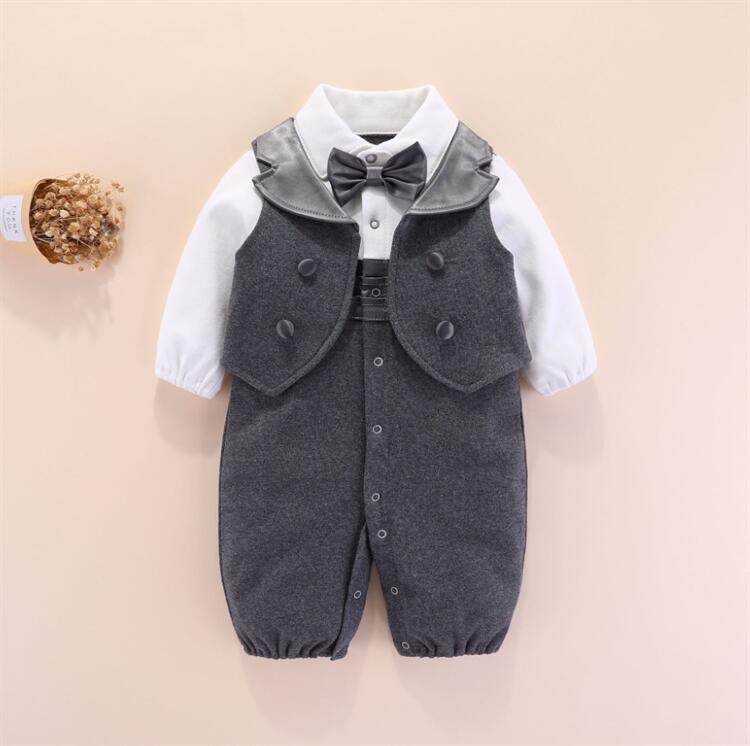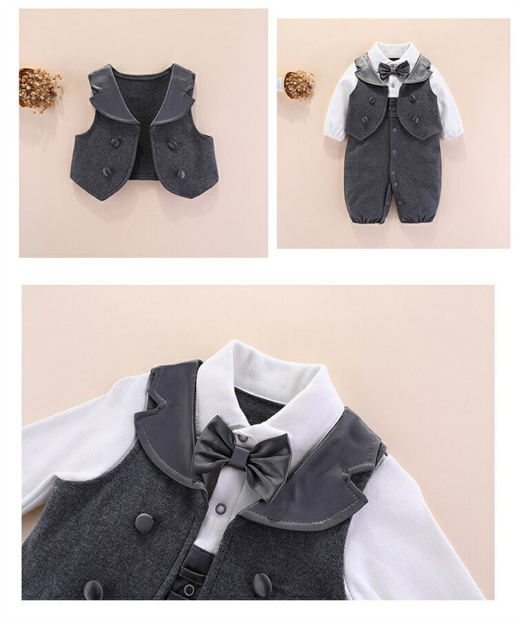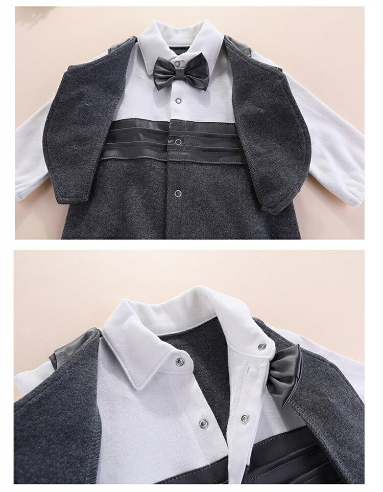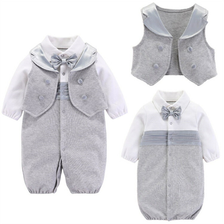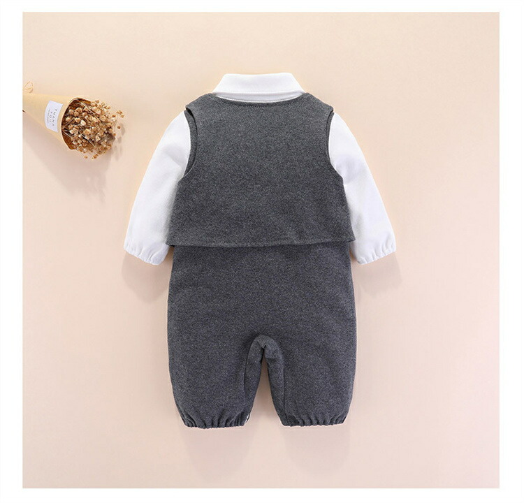 ツーウェイオール 退院着 カバーオール 新生児 2点セット 蝶ネクタイ付き ロンパース 男の子 スーツ フォーマル ベビー