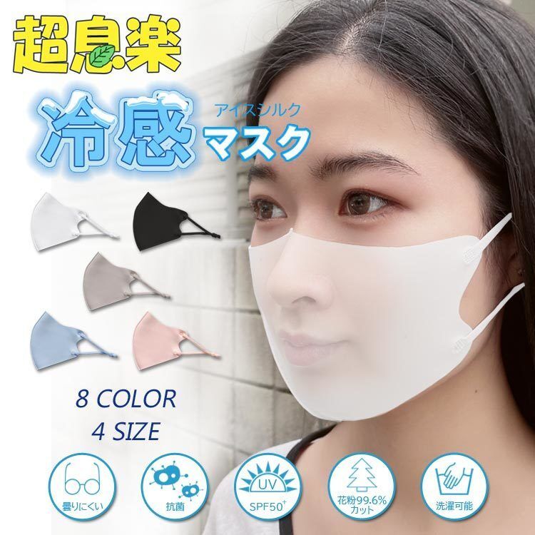 息楽冷感マスク5枚入 アイスシルクマス 5枚L(男性、大顔) 5枚M(女性、小顔) 5枚XS(幼児) 5枚S(小学生) ブルー(青)(アジャスター) ピンク(桃)(アジャスター) ホワイト(白)(アジャスター) ブラック(黒)(アジャスター) パープル(紫)(アジャスター) ベージュ(米)(アジャスター) ダークグレー(暗灰)(アジャスター) ライトグレー(浅灰)(アジャスター)