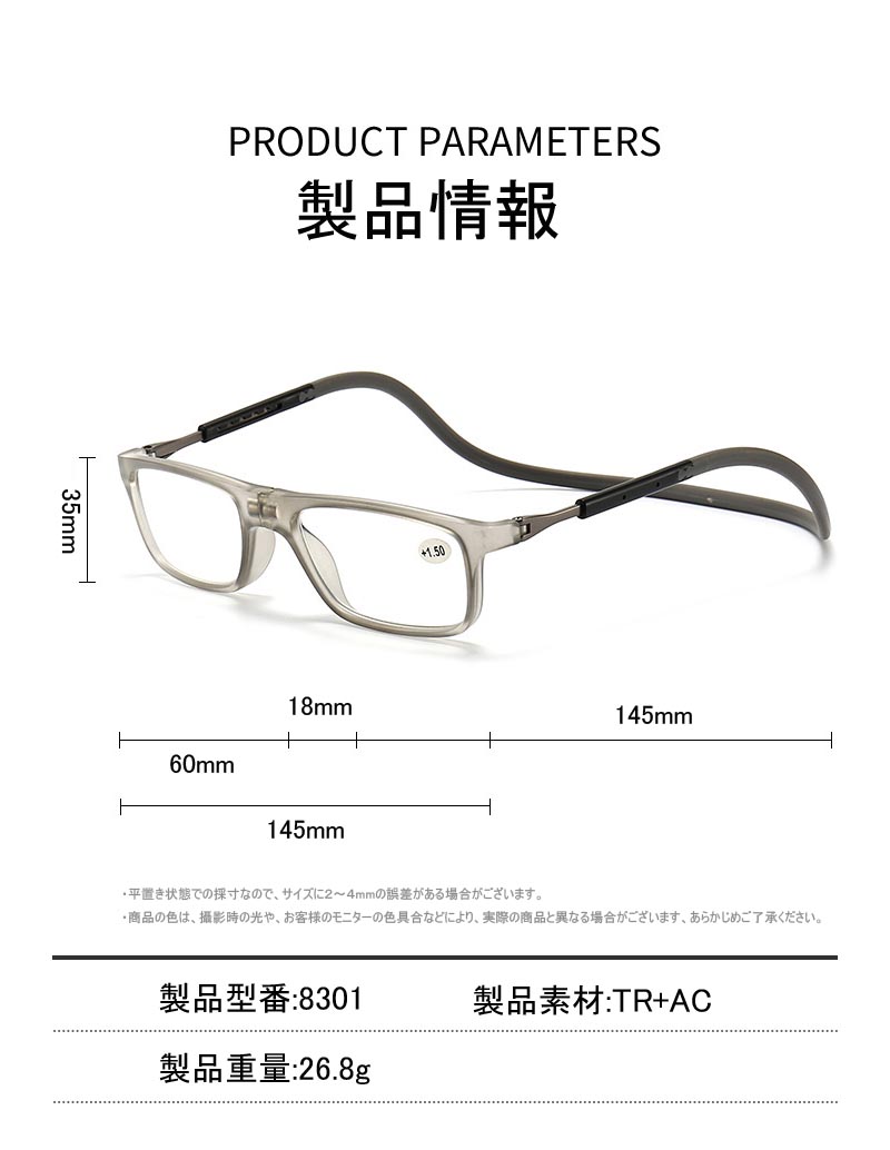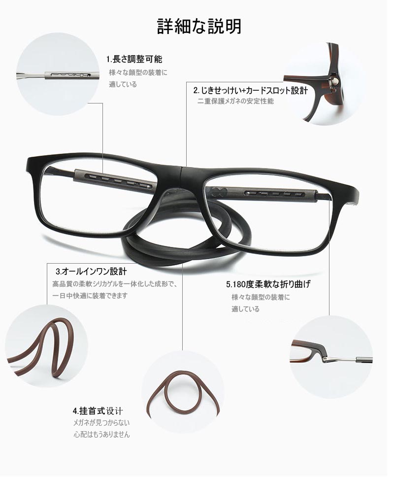 強力マグ スマート 首掛け式老眼鏡 首 バッグ 小物 ブランド雑貨 通販 ダークブラウン レッド ブルー ネイビー掛け ブラック グレー +1.00 +1.50 +2.00 +2.50 +3.00 +3.50 +4.00