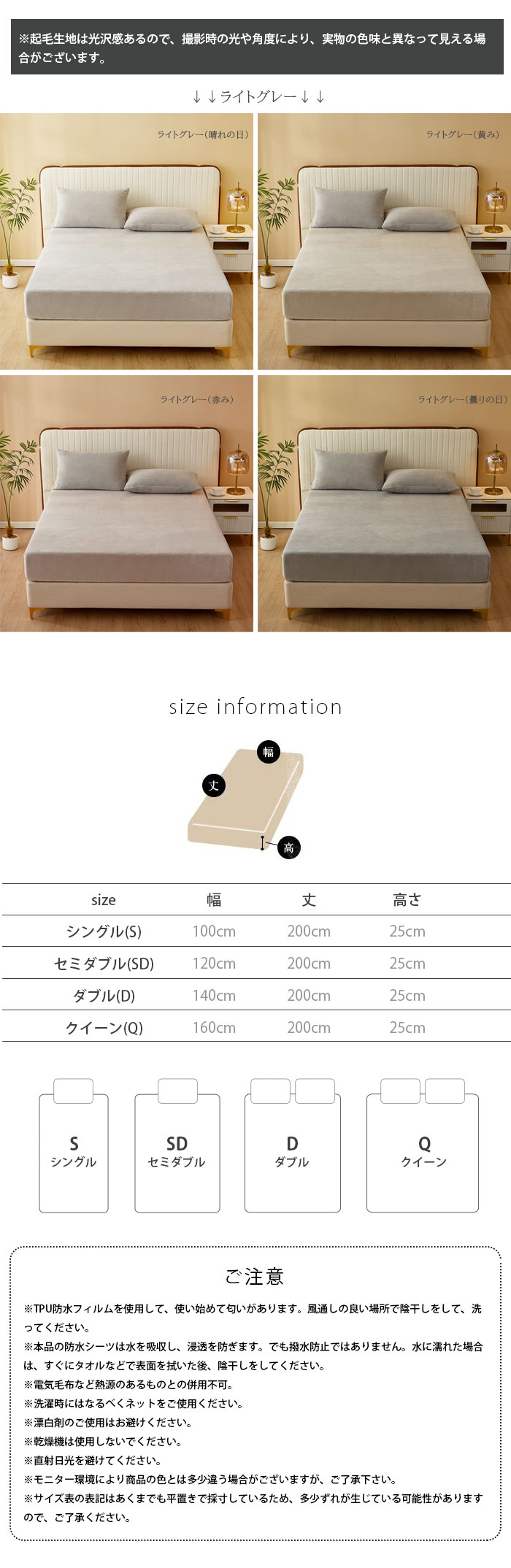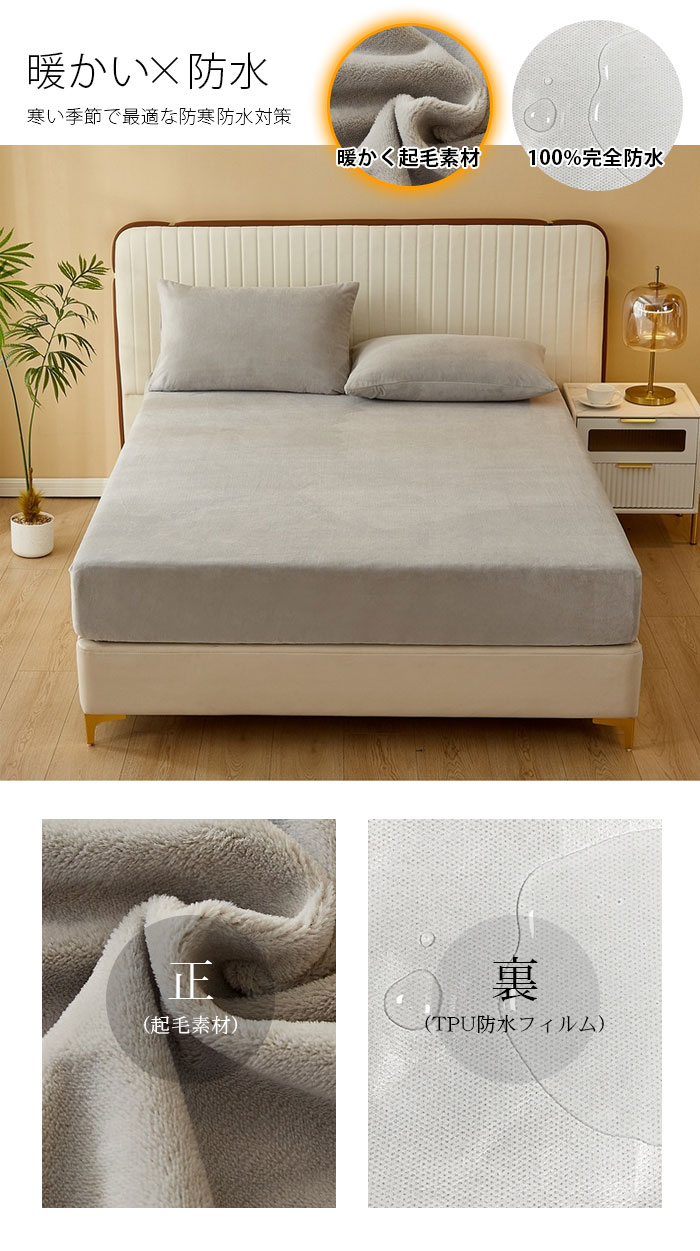 ボックスシーツ 防水 シングル 冬用 インテリア 寝具 収納 超目玉商品 ライトグレー(厚手防水) ダークグレー(厚手防水) ネイビー(厚手防水) ベージュ(厚手防水) シングル(100x200cm) セミダブル(120x200cm) ダブル(140x200cm) クイーン(160x200cm)