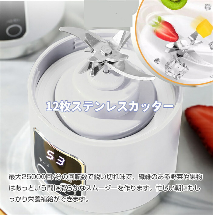 一台多役 野菜 果物 ジュース 離乳食用 栄養補充 氷 ミキサー ジューサー 500ML 4000mAh 25000回転 持ち運び 磁気誘導型安全機能 USB充電式 USB出力 アウトドア 旅行 出張 オフィス