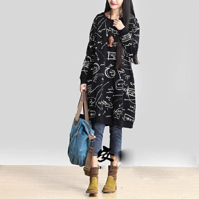 森ガール ゆるかわ 膝丈 長袖 大人可 レディースファッション 続々登場 L XL