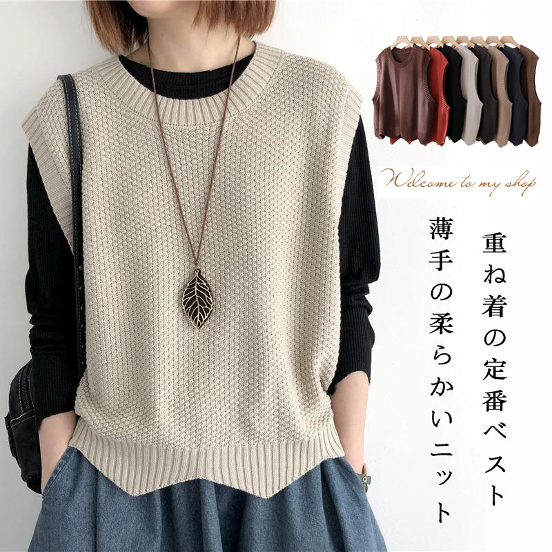 ニット ベスト レディース 春 秋 冬 トップス ベスト 早い者勝ち ブラック ダークグレー レンガ色 ネイビー ブラウン ライトラクダ色 コーヒー ライトベージュ