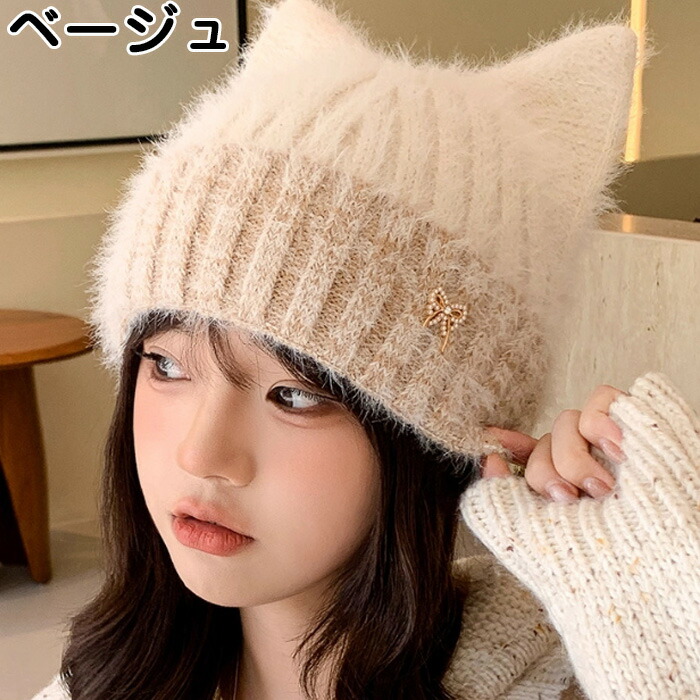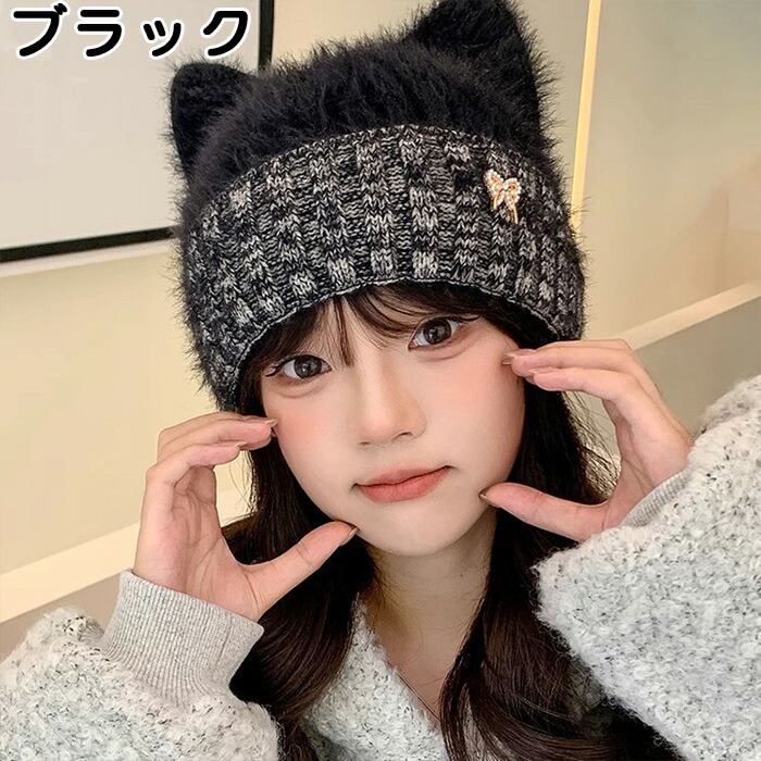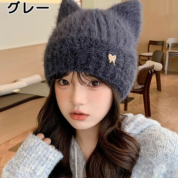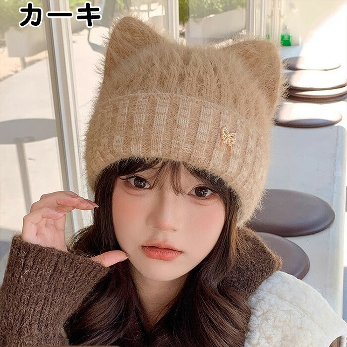 ニット帽 レディース 秋冬 猫耳 帽子 帽子 レディース帽子 ニット帽 特集 ブラック グレー ベージュ カーキ