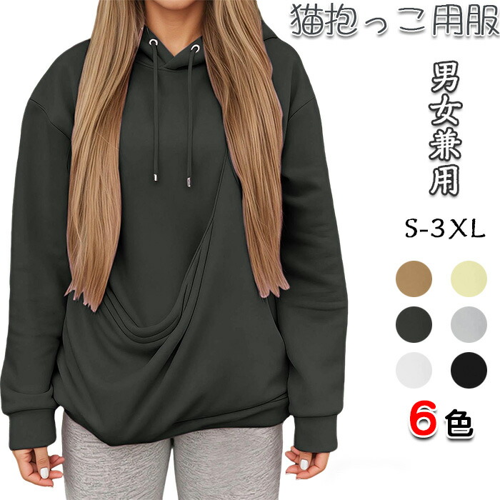 パーカー メンズ レディース 猫抱っこ レディースファッション 早い者勝ち ブラック ダークグレー ライトグレー ホワイト カーキ ライトグリーン S M L XL 2XL 3XL